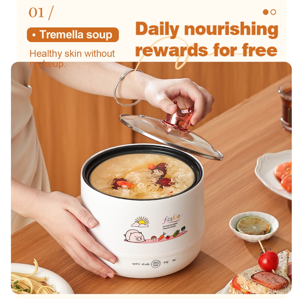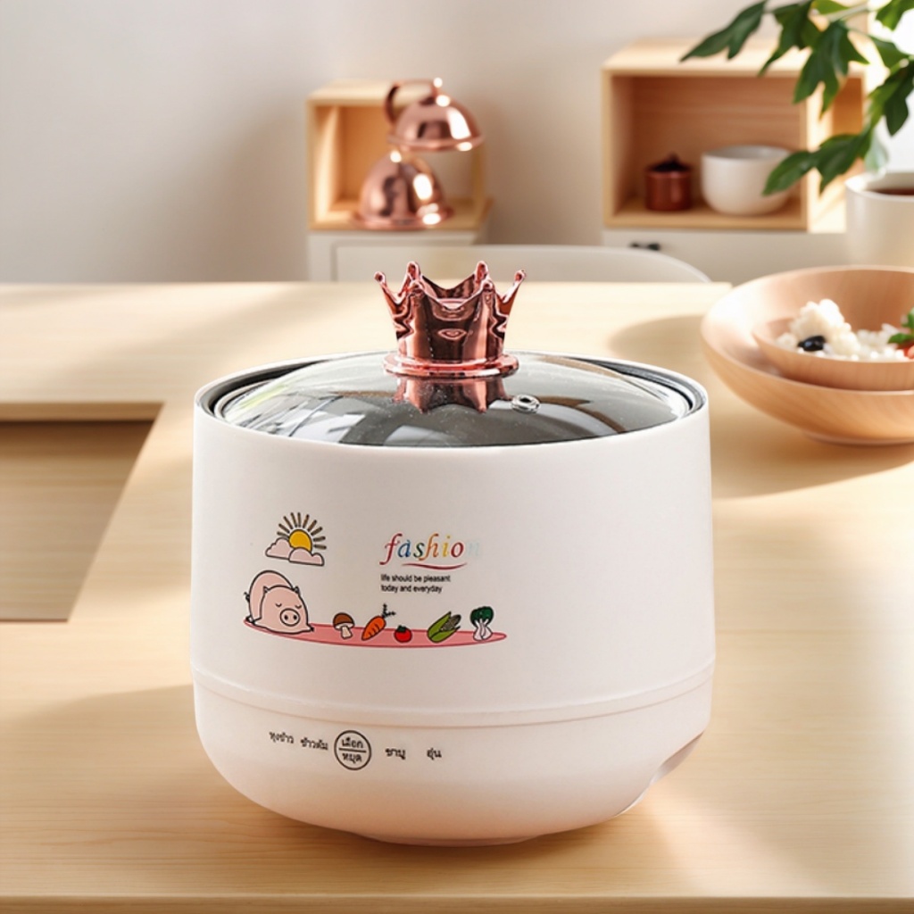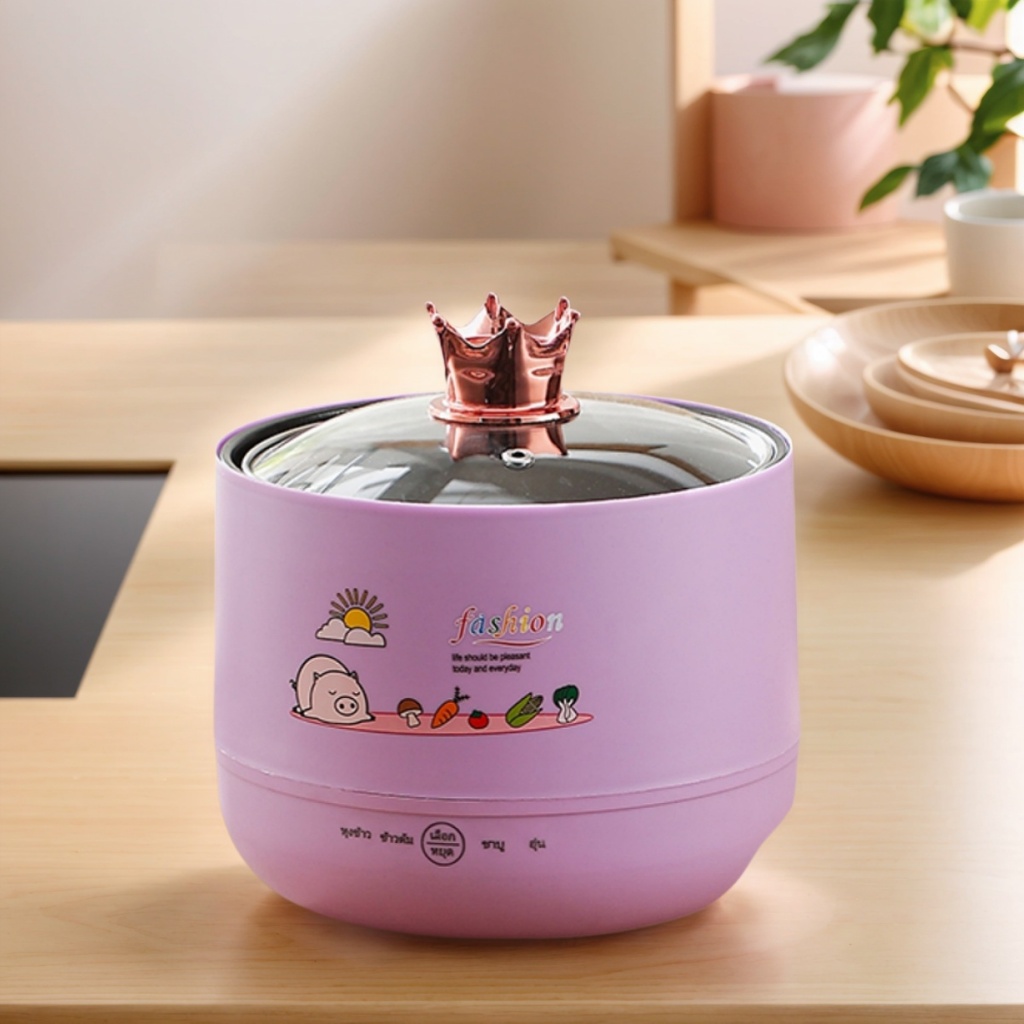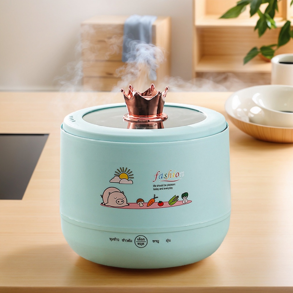 หม้อหุงข้าว หม้อไฟฟ้า อเนกประสงค์ความจุ 1 ลิตร ขนาด 17 ซม.เหมาะสำหรับ1-2ท่าน สีสันเรียนหรู ใช้หุงข้าว ต้ม แกง อุ่น ได้