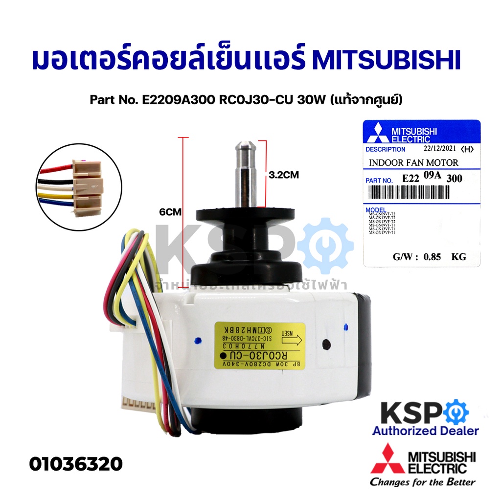 มอเตอร์แอร์ มอเตอร์คอยเย็น MITSUBISHI มิตซูบิชิ Part No. E2209A300 RC0J30-CU 30W (แท้จากศูนย์) อะไหล่แอร์