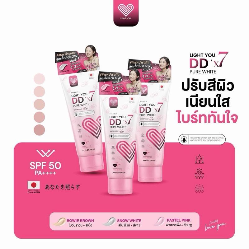 โทนอัพผิว ครีมพอกผิว ดีดีพอกผิว DDx7 สูตรใหม่ กันน้ำ กันเหงื่อ LIGHT YOU DD ปริมาณ 80 mL.