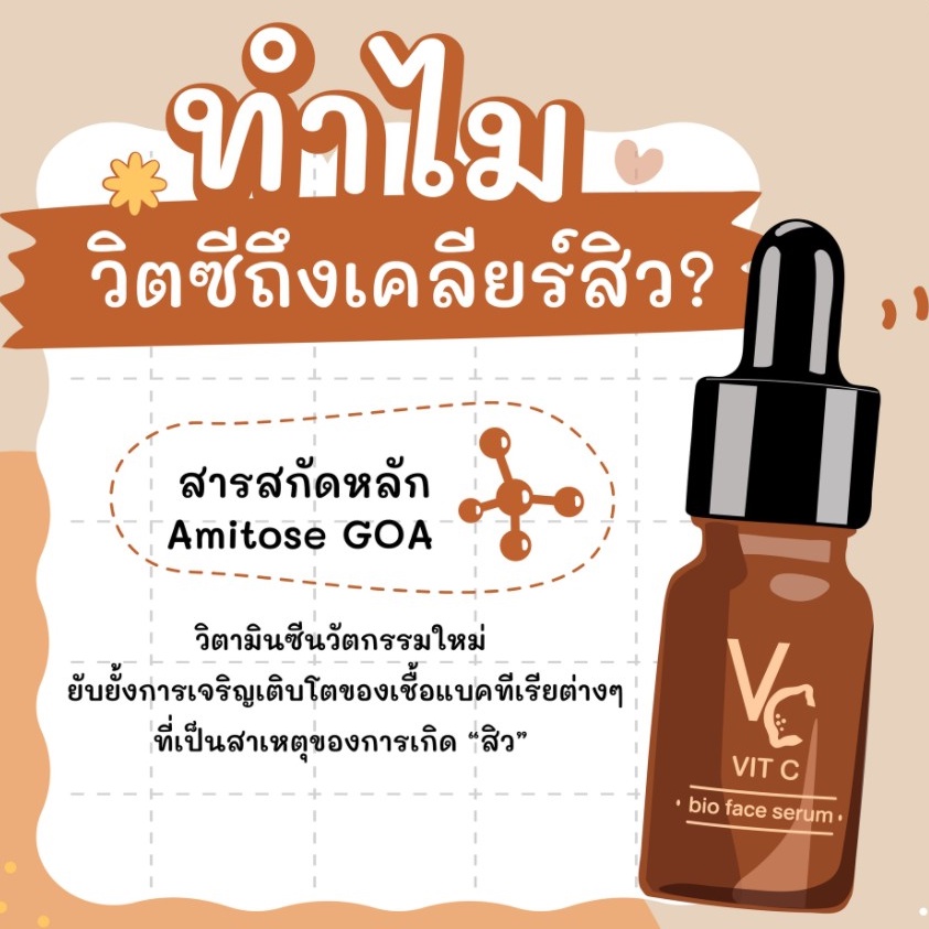 [ของแท้ 100%] Vit C Bio Face Serum เซรั่ม วิตซี น้อง ฉัตร 10ML.