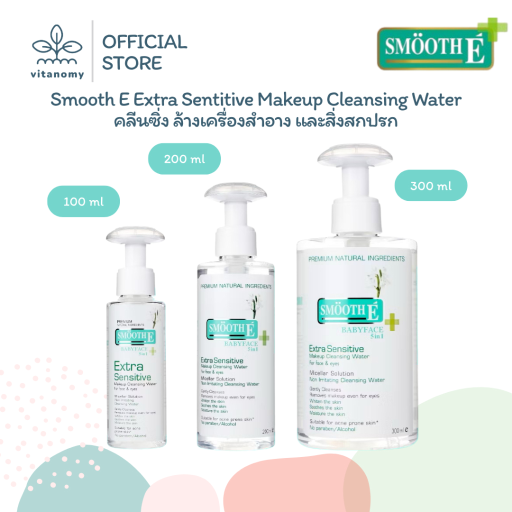 Smooth E Extra Sensitive Makeup Cleansing Water สมูทอี คลีนซิ่ง | ล้างเครื่องสำอาง สิ่งสกปรก | ขนาด 100, 200, 300 มล.
