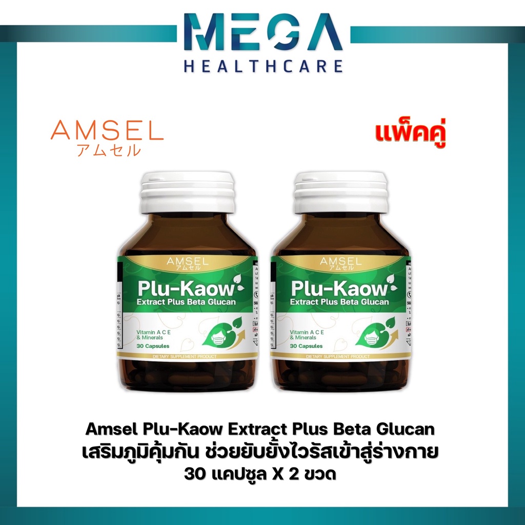 ( 2 ขวด) AMSEL Plu-kaow Extract Plus Beta Glucan (30 แคปซูล) บำรุงร่างกาย เสริมภูมิคุ้มกัน