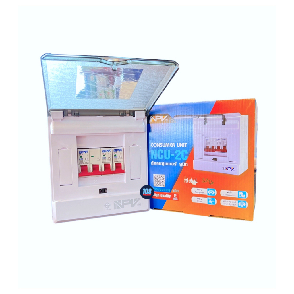 NPV รุ่น NCU-2C ตู้คอนซูเมอร์ยูนิต 2 ช่อง มอก.1436-2540 เมน 2P63A พร้อมลูกเซอร์กิต 32A,20A รับประกัน1ปี