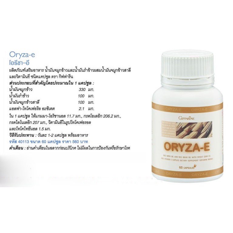 [ ส่งฟรี ] น้ำมันรำข้าว น้ำมันจมูกข้าว กิฟฟารีน ORYZA-E GIFFARINE โอรีซาอี ผสมน้ำมันจมูกข้าวสาลี และวิตามินอี