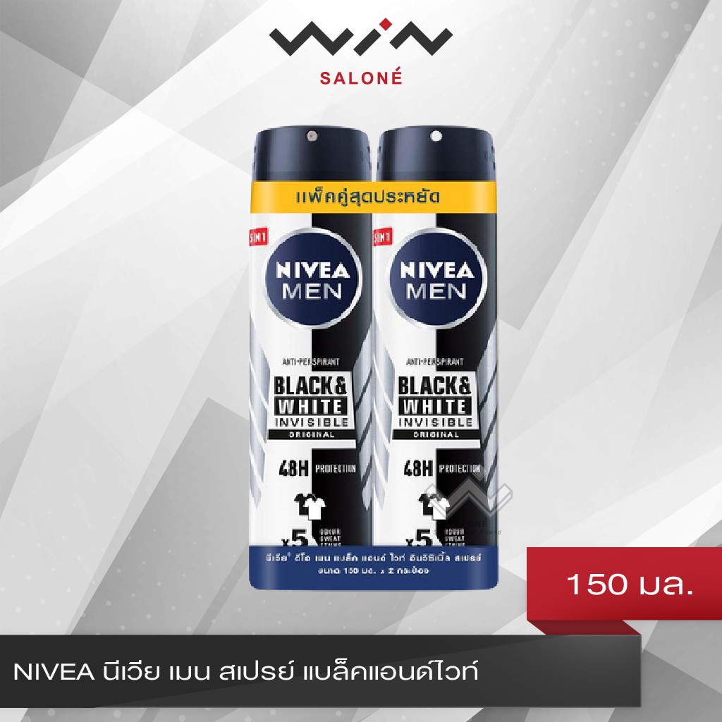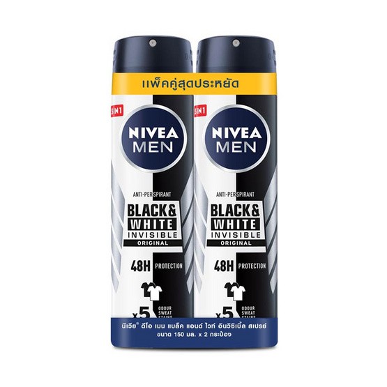 NIVEA นีเวีย เมน สเปรย์ แบล็คแอนด์ไวท์ 150 มล. (แพ็คคู่) แห้งเร็ว ระงับเหงื่อ และดับกลิ่นกาย ลดคราบขาว [L3212]