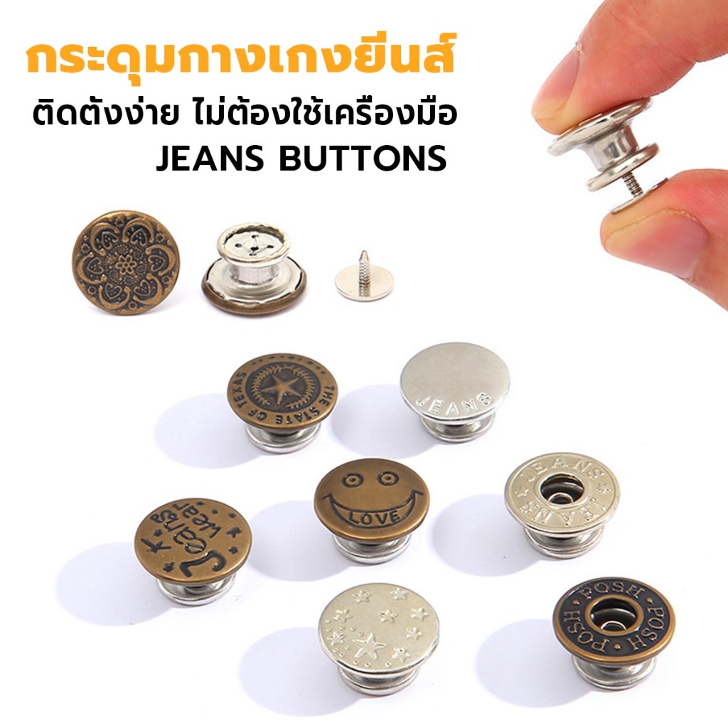 10PCS/pack กระดุมยีนส์ กระดุมกางเกงยีนส์ ติดตั้งง่าย ไม่ต้องใช้เครื่องมือ ติดตั้งวัสดุ กระดุมเอว Jeans buttons