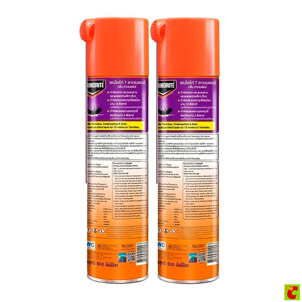 เชนไดร้ท์ 7 สเปรย์ป้องกันและกำจัดปลวก มด แมลงสาบ กลิ่นลาเวนเดอร์ 600 มล. แพ็ค 2