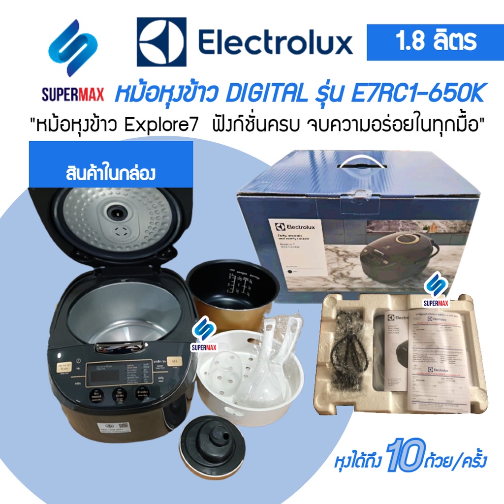 ELECTROLUX หม้อดิจิตอล 1.8 ลิตร รุ่น E7RC1 650K มีถึง 10 ฟังก์ชันหุงข้าวอัจฉริยะ ระบบทำความร้อน 3 ด้าน (ด้านบน ด้านข้าง