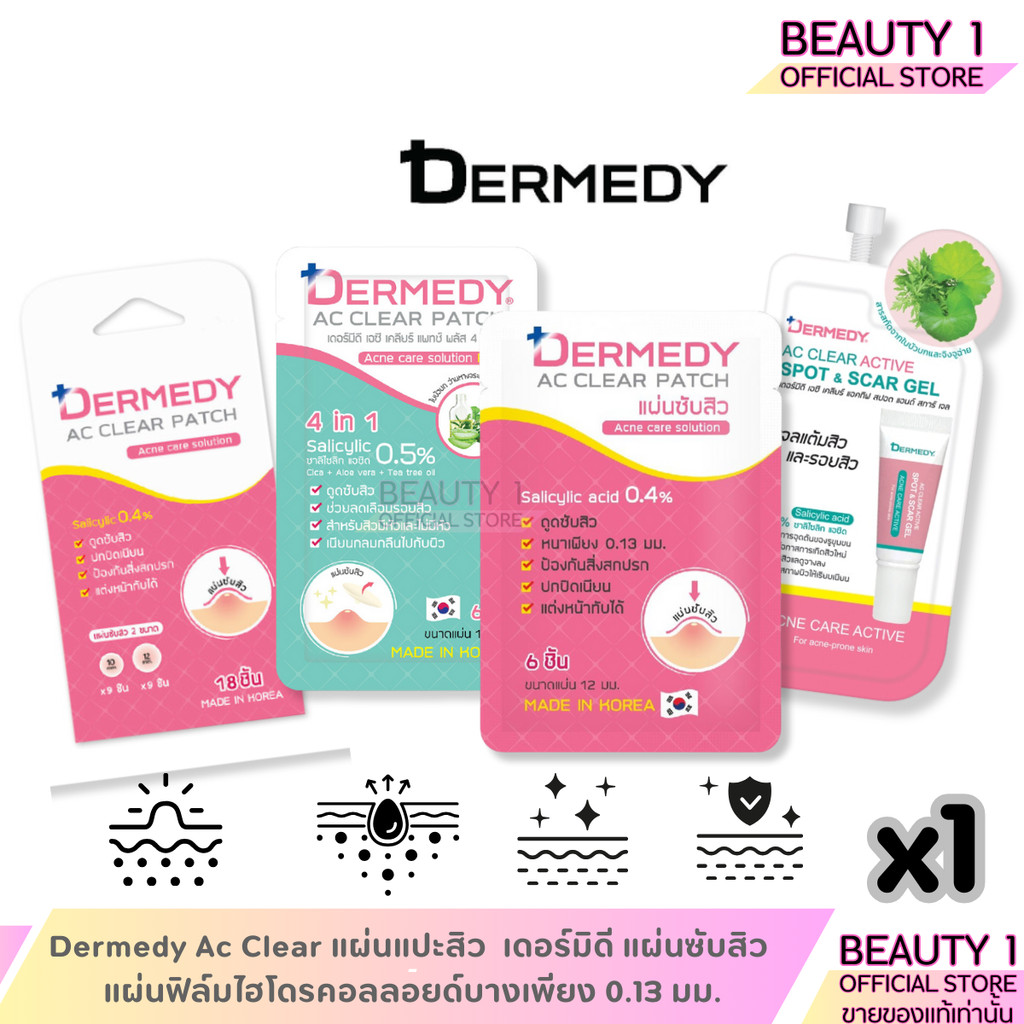 Dermedy Ac Clear แผ่นแปะสิว เดอร์มิดี แผ่นซับสิว แผ่นฟิล์มไฮโดรคอลลอยด์บางเพียง 0.13 มม.