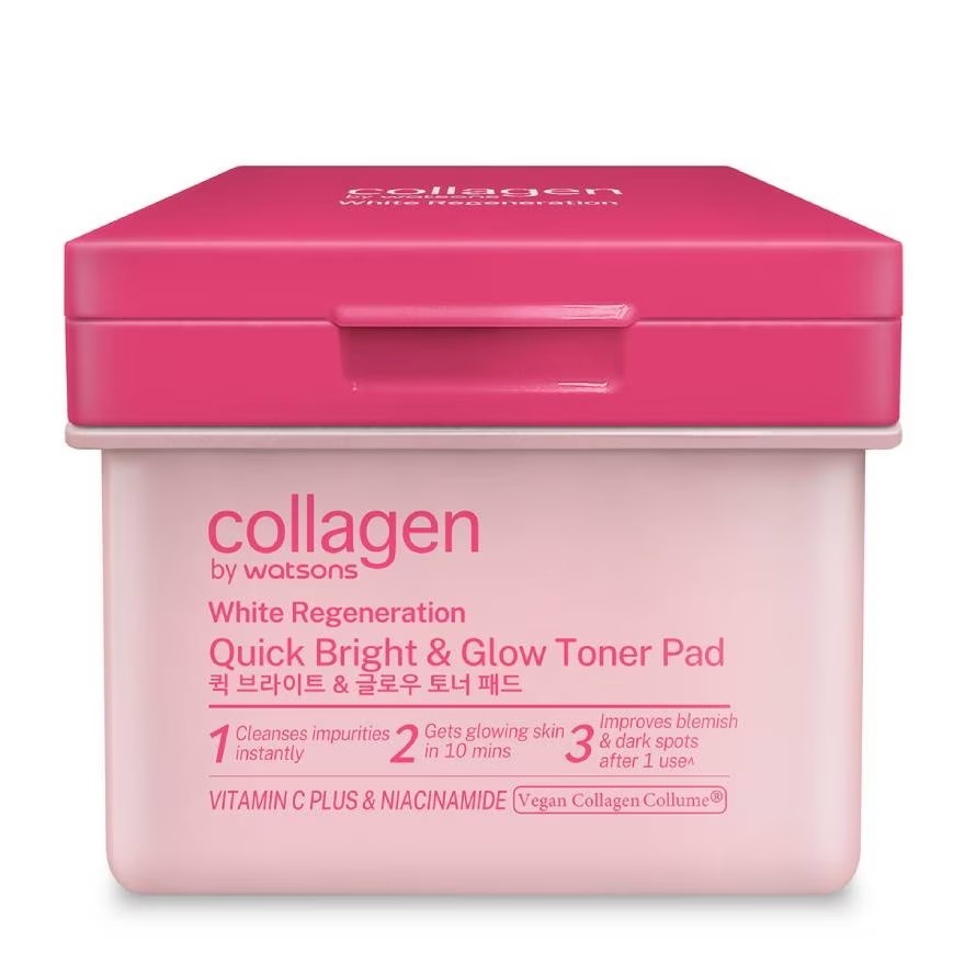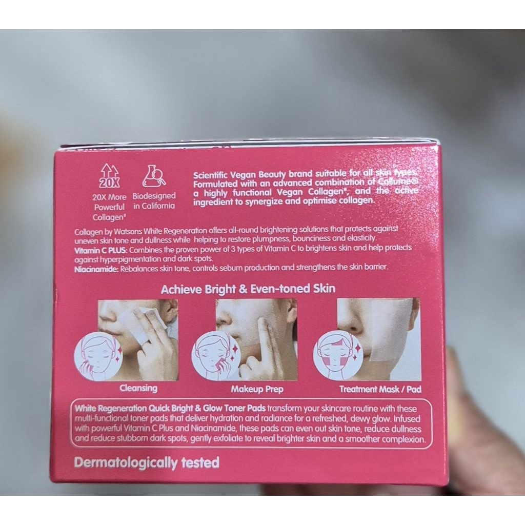 ส่งด่วน🌸 วัตสัน แผ่นเช็ดหน้า โทนเนอร์ แพด 90 ชิ้น Collagen by watsons Bright & Glow Toner Pad