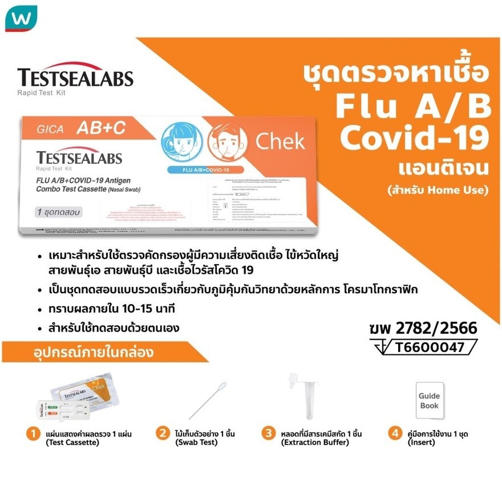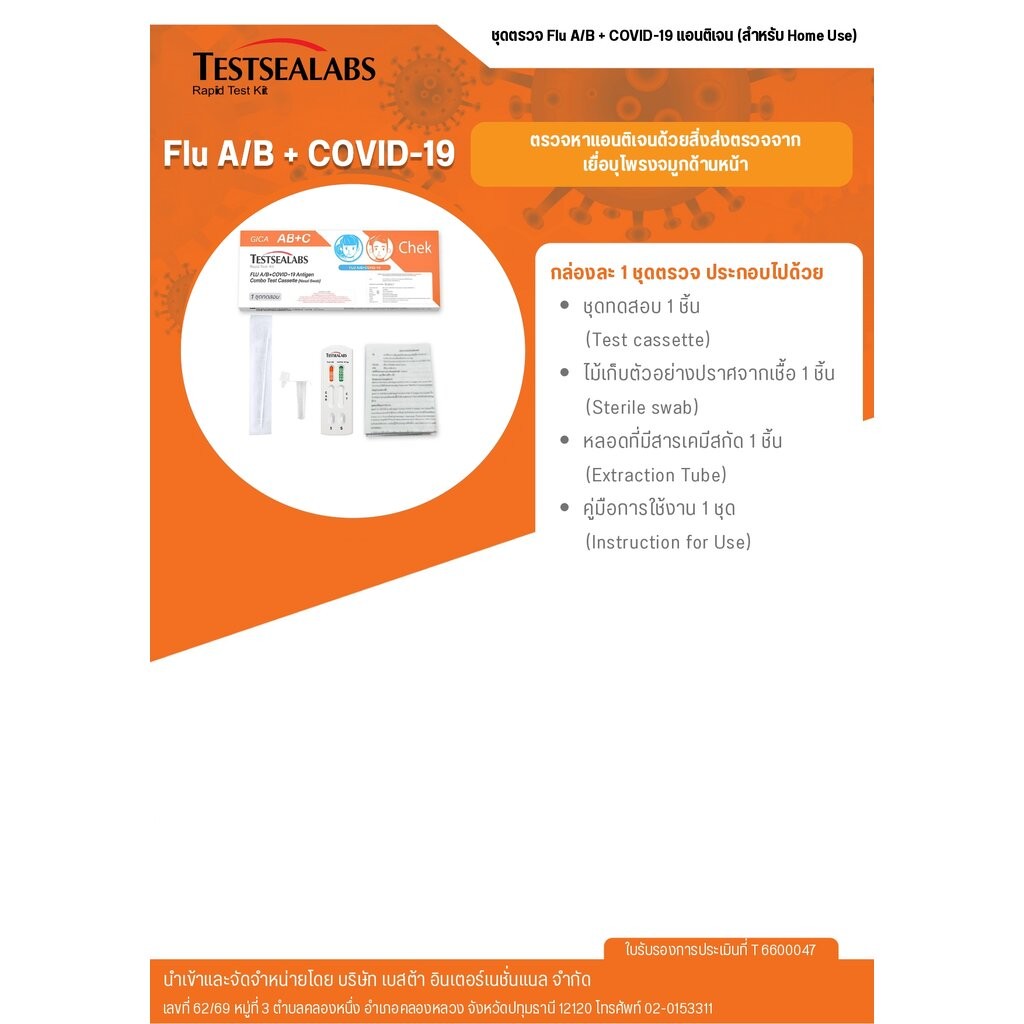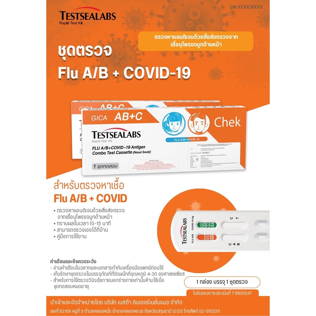 Testsealab ชุดตรวจไข้หวัดใหญ่สายพันธุ์ A/B และไวรัสโควิด19 จากเยื่อบุโพรงจมูก