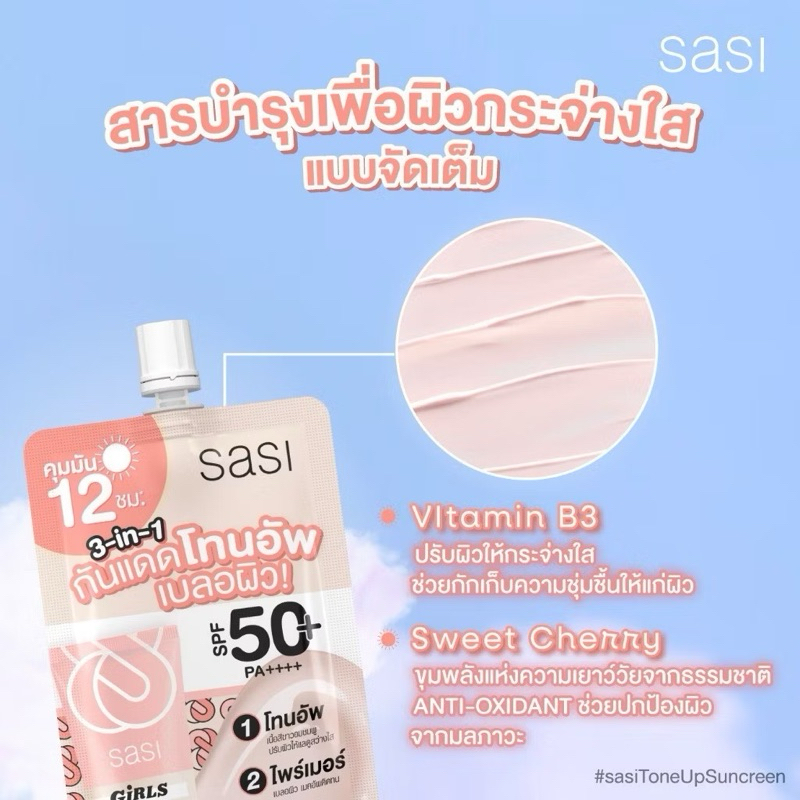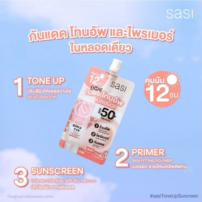 Sasi ศศิ เกิร์ล แคน 3in1 โทนอัพ แอนด์ ไพร์เมอร์ ซันสกรีน เอสพีเอฟ 50+ พีเอ++++ 5ml.
