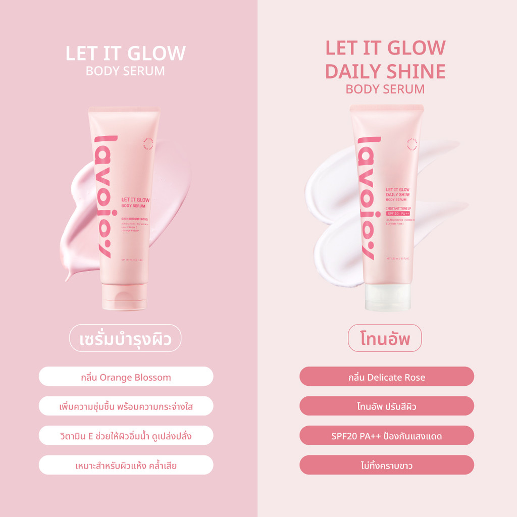 (มีตัวเลือก) ลาโวจอย เซรั่มบำรุงผิวกาย โทนอัพ กันแดด Lavojoy Let It Glow Body Wash And Body Serum