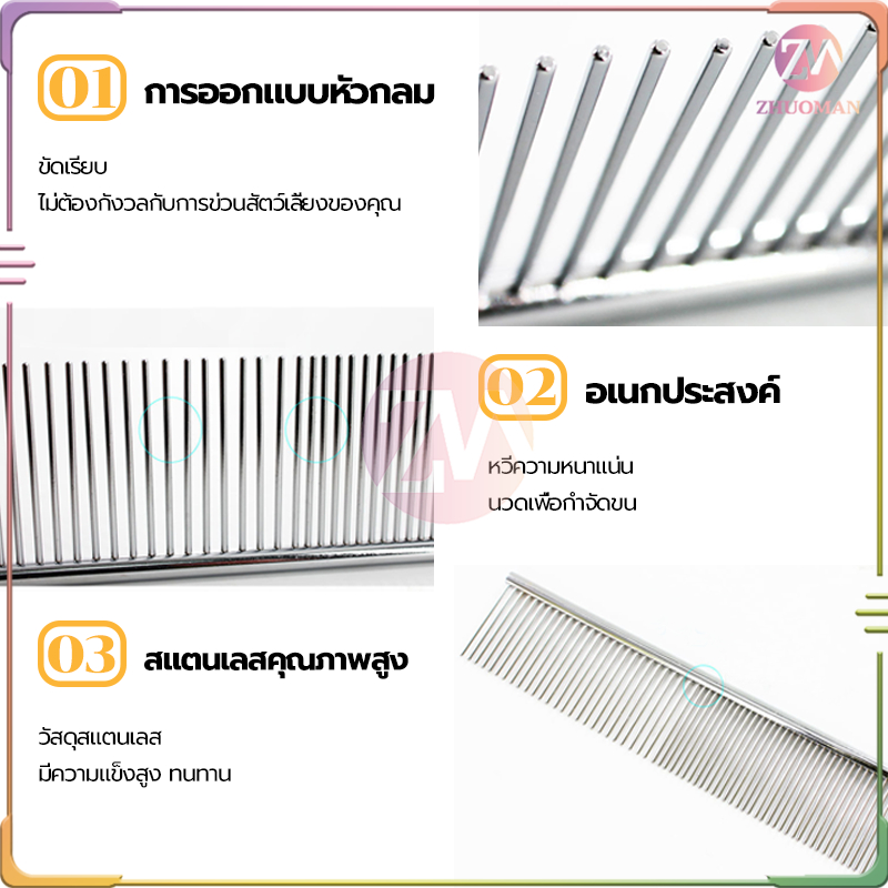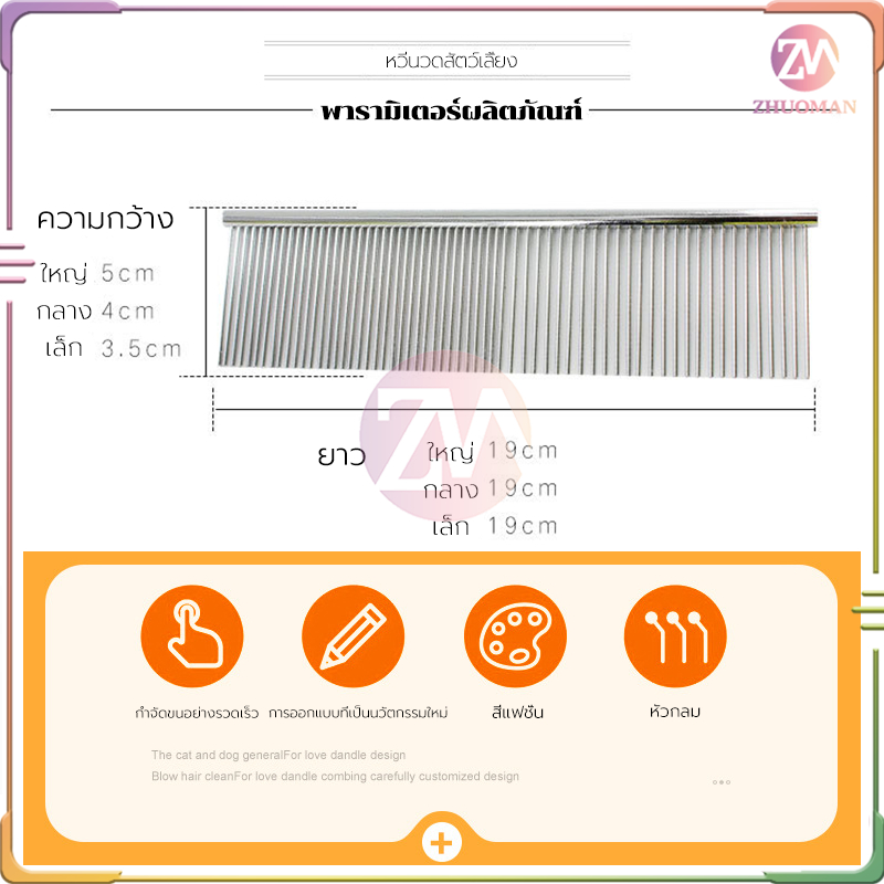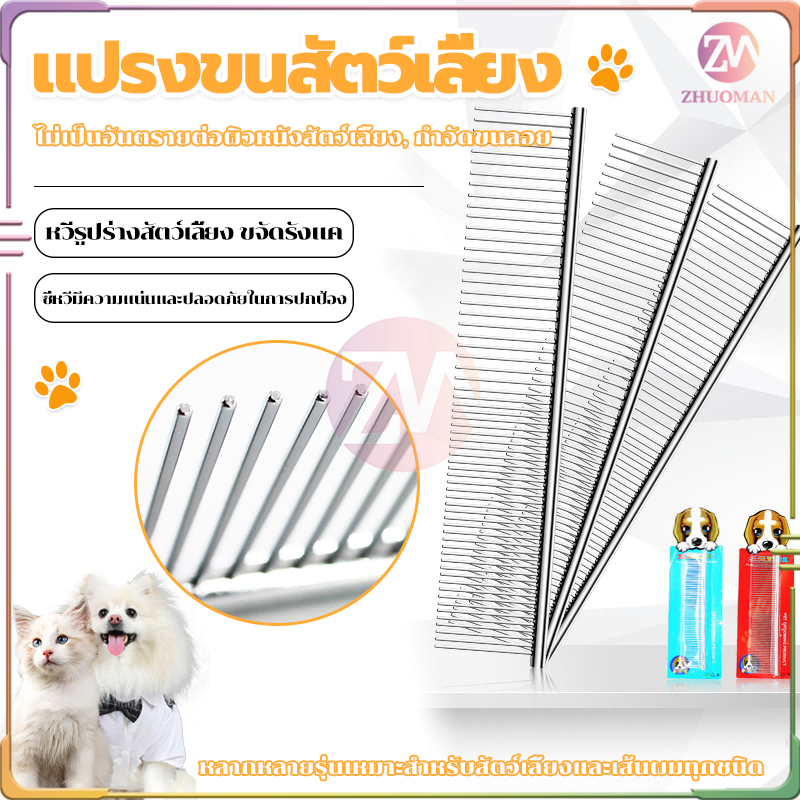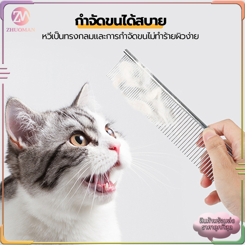 หวีแมว 2 ใน 1หวีสุนัข ที่แปรงขนแมว/หวีสแตนเลส 2 ด้าน/แปรงขนสัตว์เลี้ยง ปลายตัด ไม่แหลม ไม่ทำให้ระคายเคืองผิวหนัง