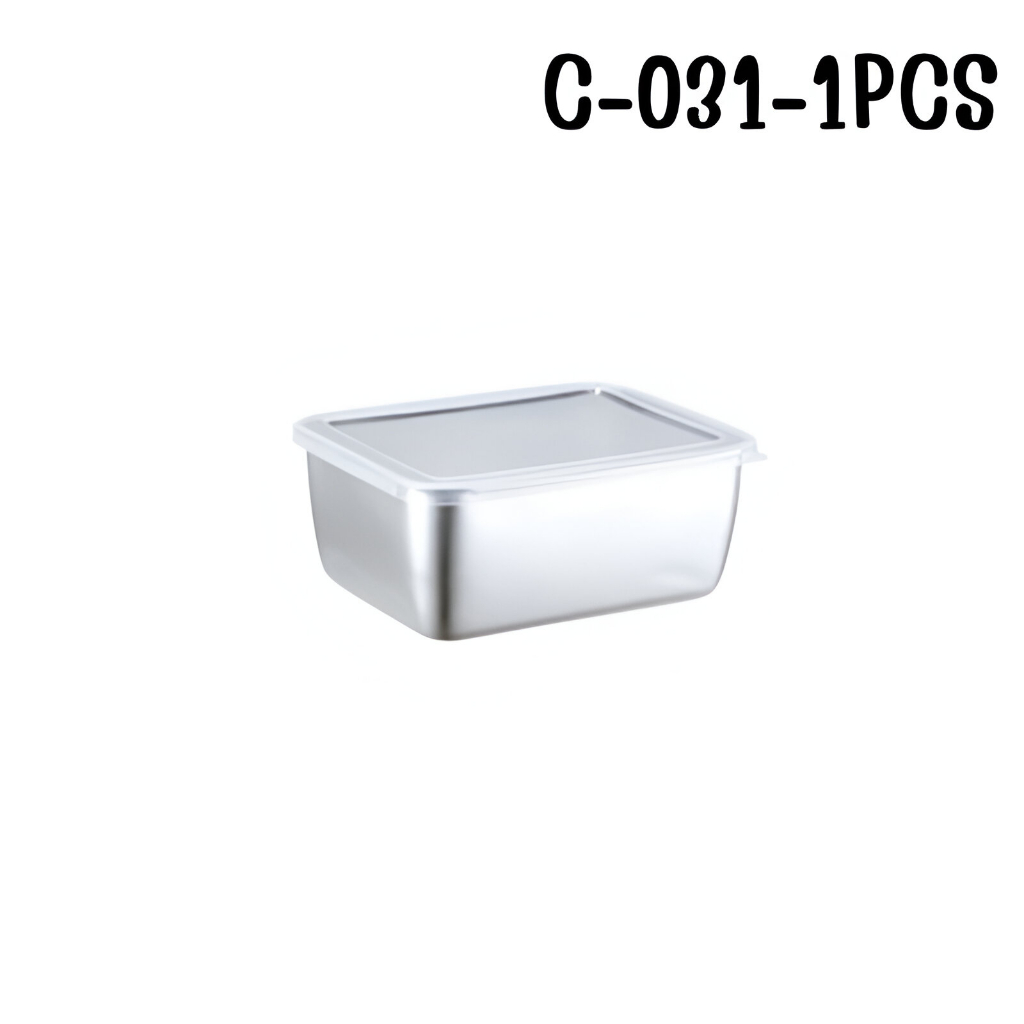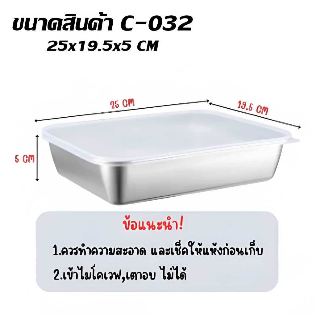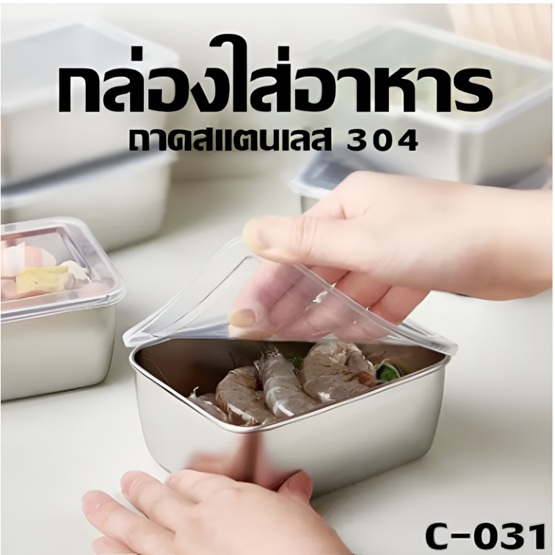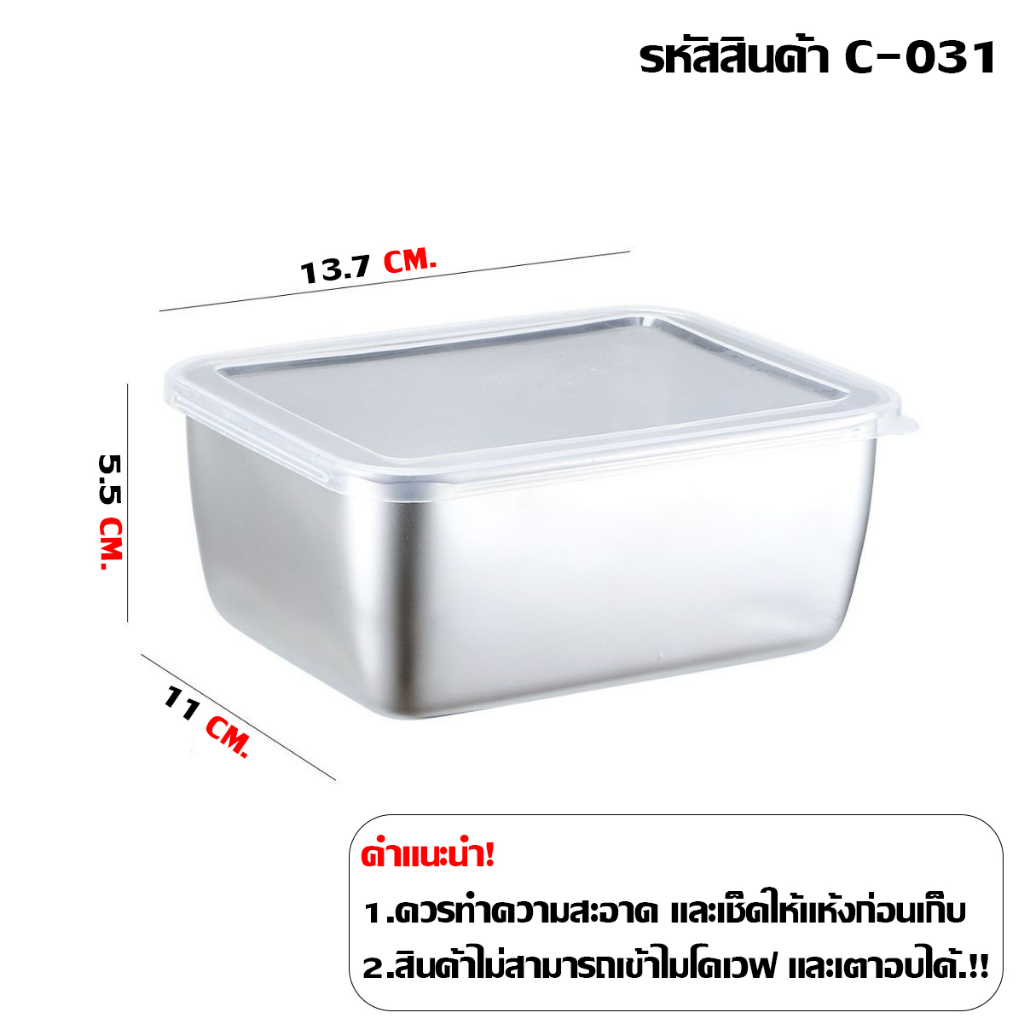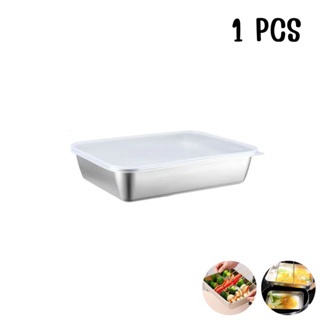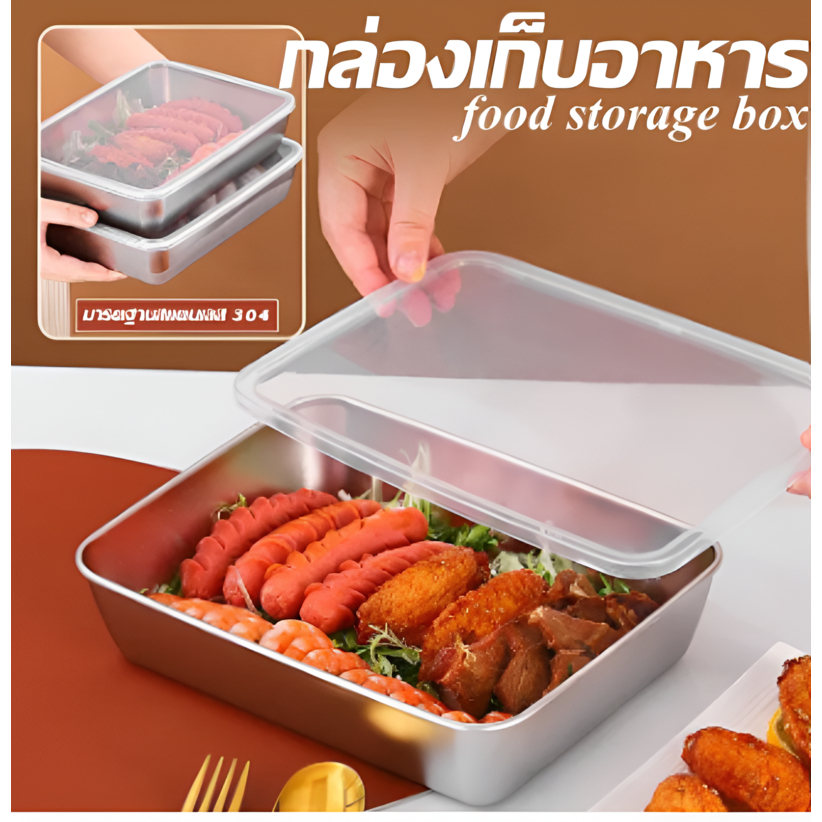 กล่องใส่อาหารสแตนเลส 304 ก้นลึก แข็งแรงทนทาน พร้อมฝาปิด ใช้ได้กับตู้เย็นและไมโครเวฟ