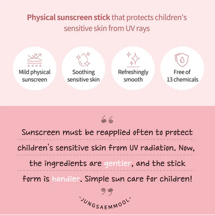 [JUNGSAEMMOOL] Kids Mild Sun Stick Waterful Soothing Stick Sunscreen 17g