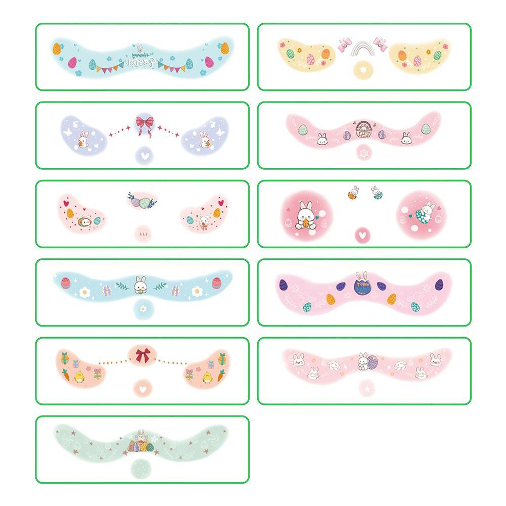 11 ชิ้น/เซ็ตอีสเตอร์เด็กสติกเกอร์แต่งหน้าชั่วคราวสติกเกอร์รอยสักน่ารักอีสเตอร์สติกเกอร์ใบหน้า