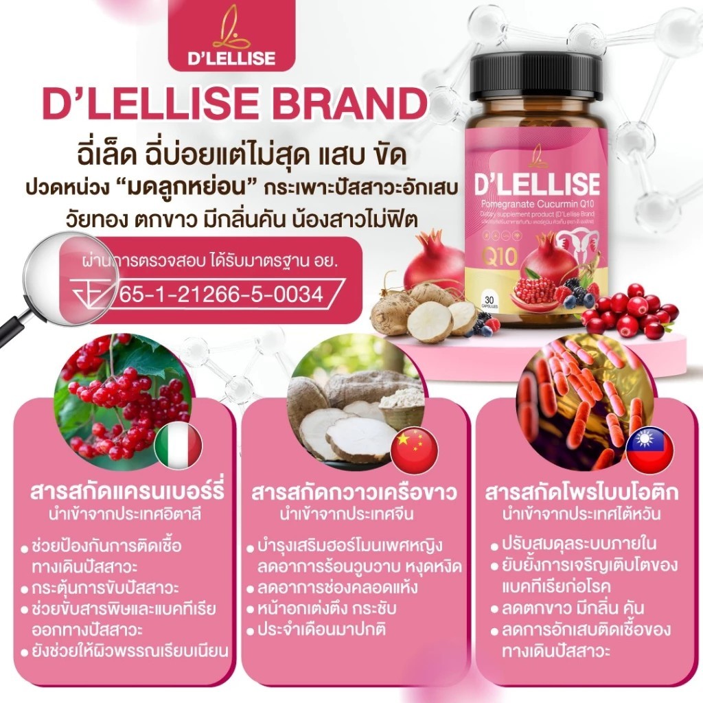 D'LELLISE ดีเลลลิสเซ่ วิตามินสมุนไพรแคปซูล ดูแลผู้หญิง ของแท้ 100% 1 กระปุก มี 30 แคปซูล