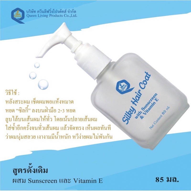 ซิลกี้ แฮร์โคท Queen Silky Hair Coat เซรั่ม บำรุงผมเสีย แห้ง ผมแตกปลาย บำรุงผมร่วง 85 ml