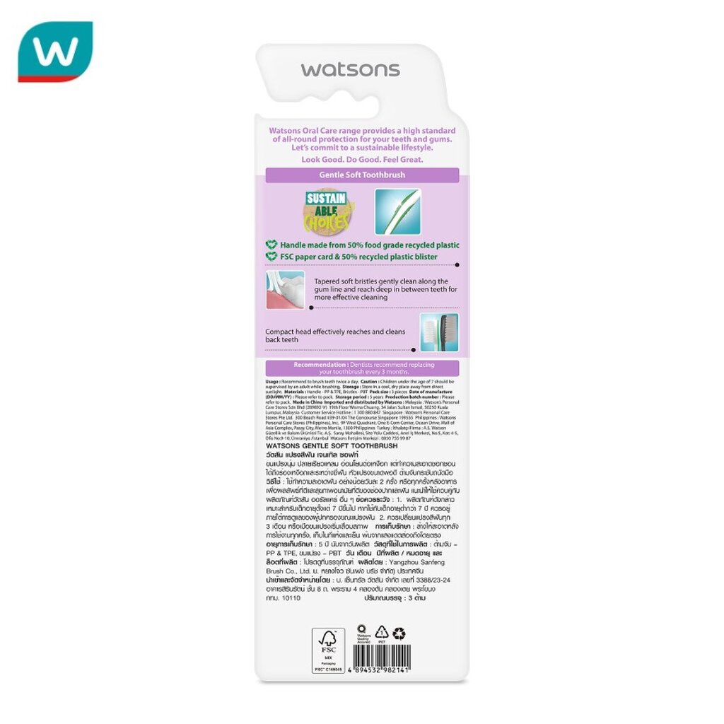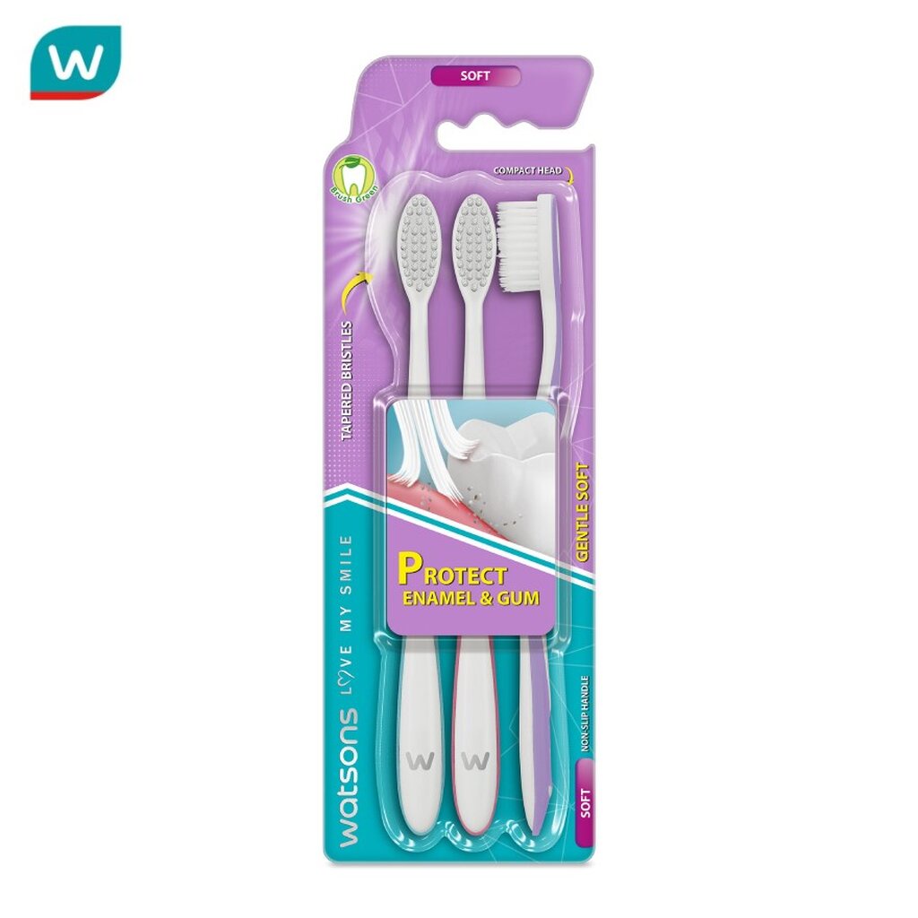 Watsons วัตสัน แปรงสีฟัน เจนเทิล ซอฟท์ 3ด้าม.