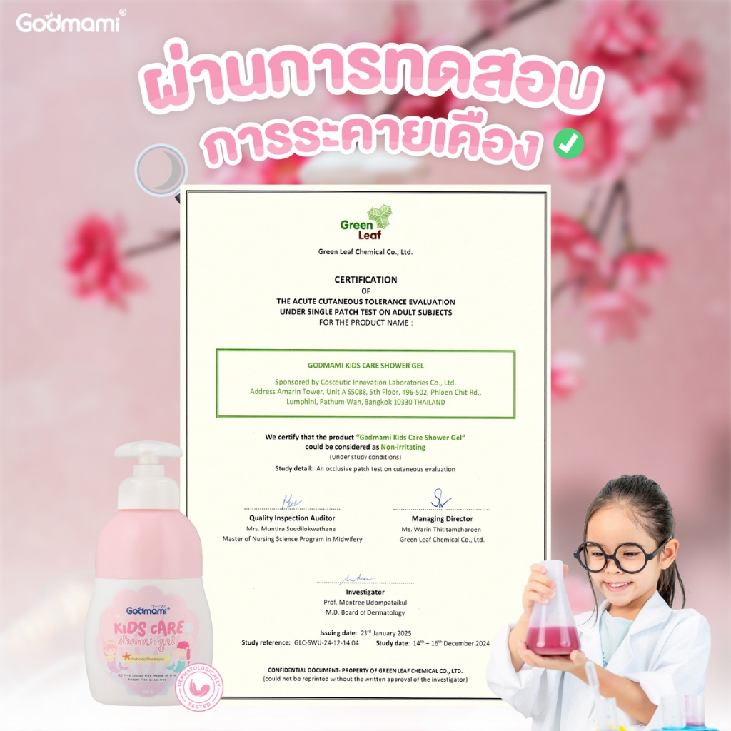 Godmami เจลอาบน้ำสำหรับเด็ก มีพรีไบโอติกและโพสต์ไบโอติก กลิ่นเชอรี่ บลอสซัมพรีเมียม