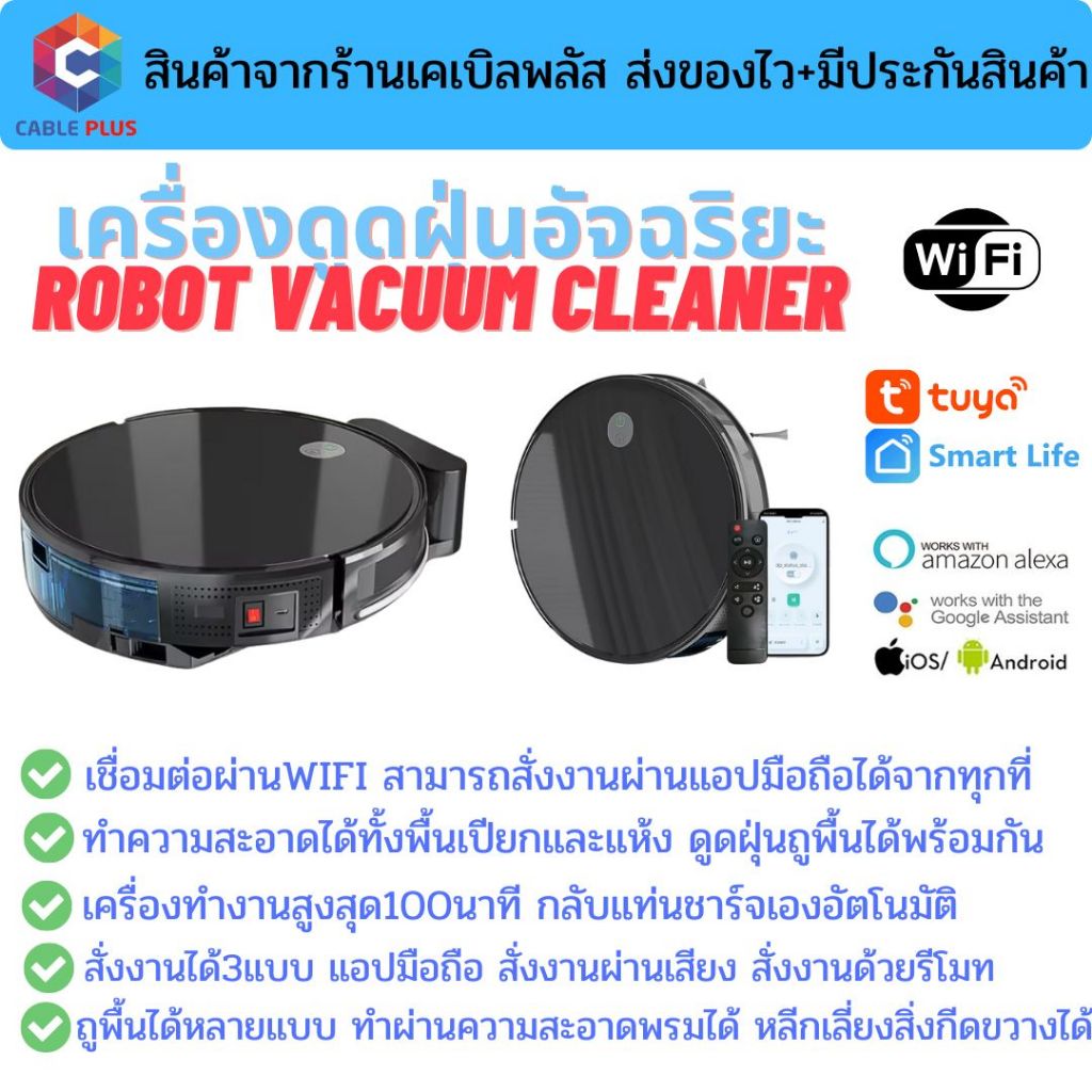 เครื่องดูดฝุ่นหุ่นยนต์อัจฉริยะทําความสะอาดพื้นเปียกและแห้ง Tuya Robot Vacuum cleaner 3in1 WiFi Gyro