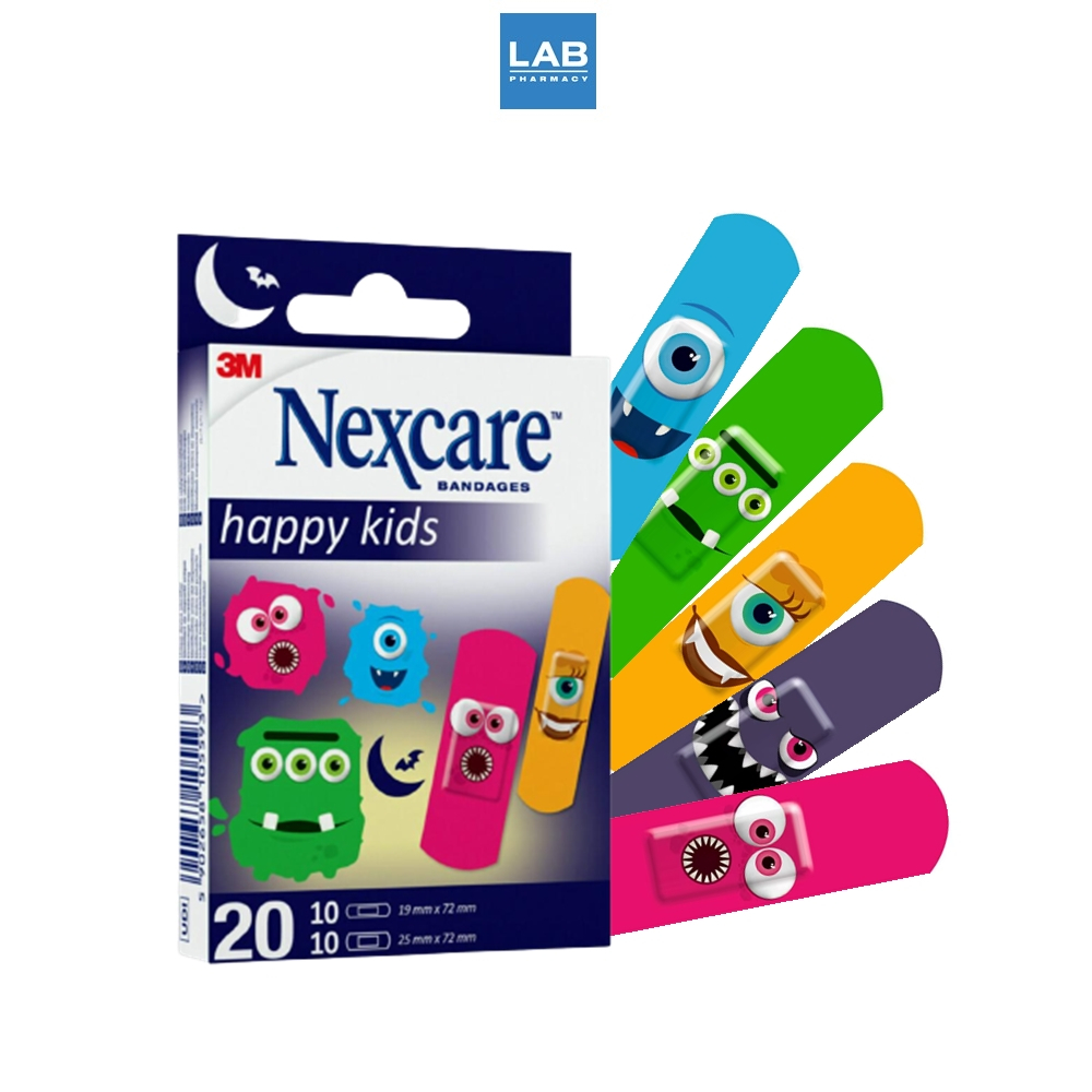 3M Nexcare Bandages Happy Kids 20Pcs./Pack - 3เอ็ม เน็กซ์แคร์ พลาสเตอร์เยื่อกระดาษ ลายมอนสเตอร์ 20ชิ้น