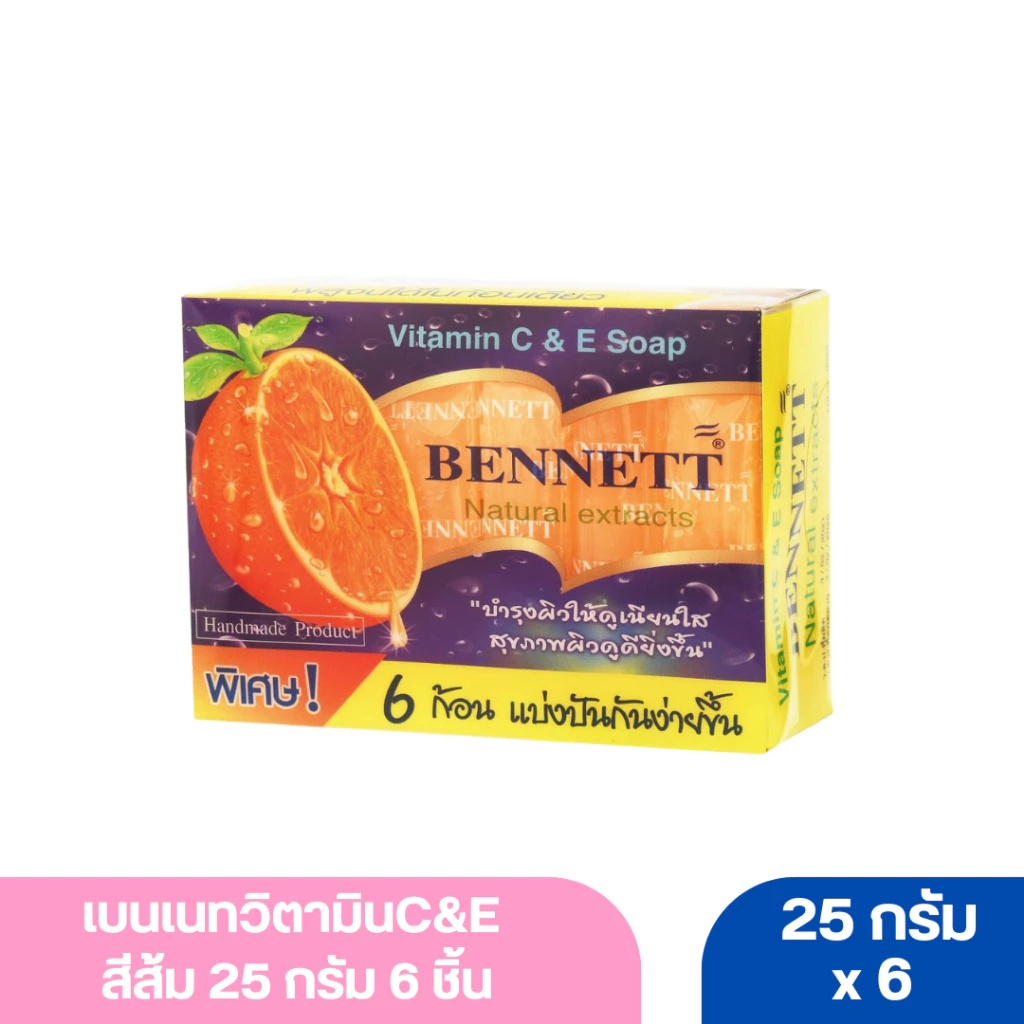 (ก้อนแบ่งโหล 12 ก้อน) BENNETT เบนเนท สบู่วิตามิน ซีและอี 1 ก้อน 6 ชิ้น (150 กรัม)