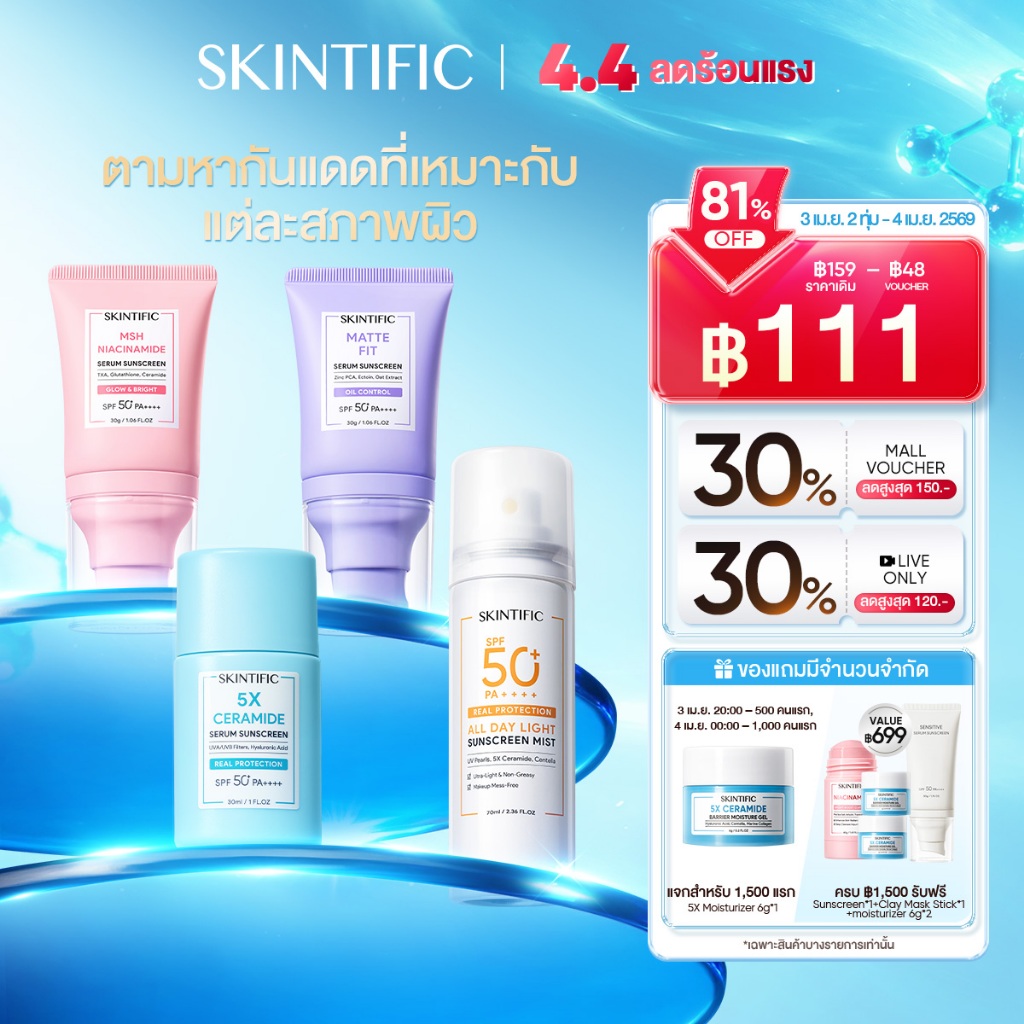 SKINTIFIC Sunscreen SPF50+ PA++++ ครีมกันแดด กันแดดหน้า เนื้อแมทท์ ไนอาซินาไมด์ เนื้อน้ำบางเบา กันแดดตัว กันแดด