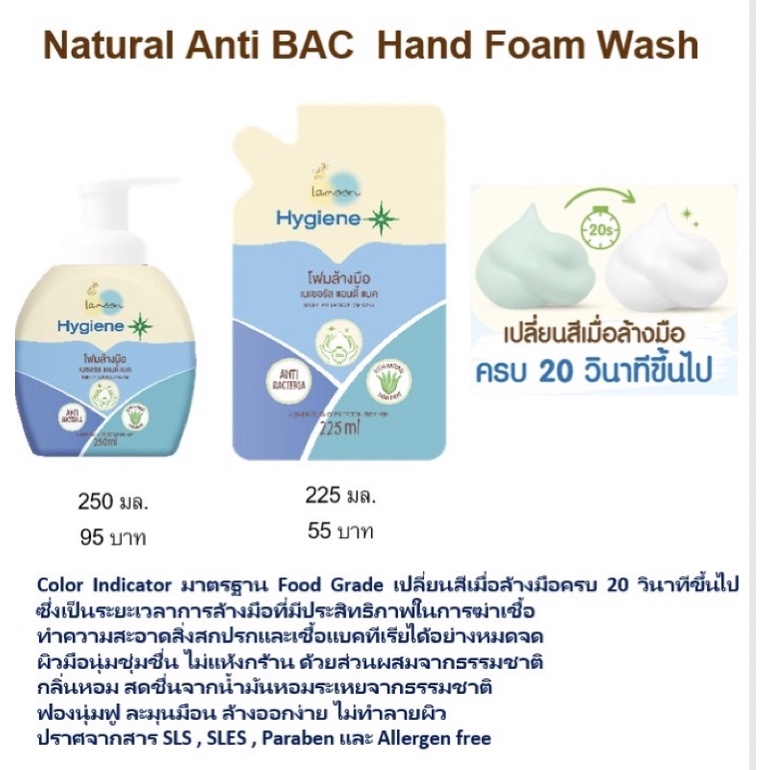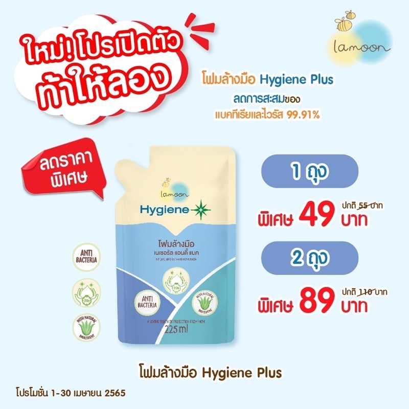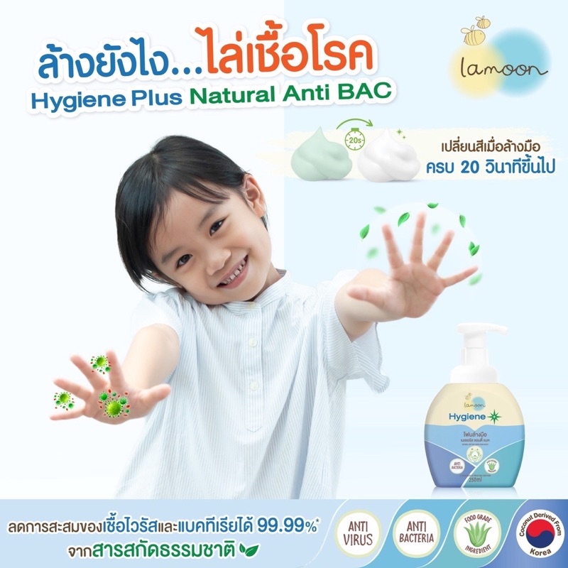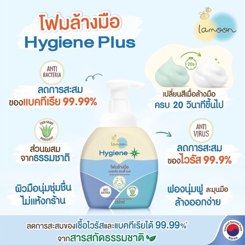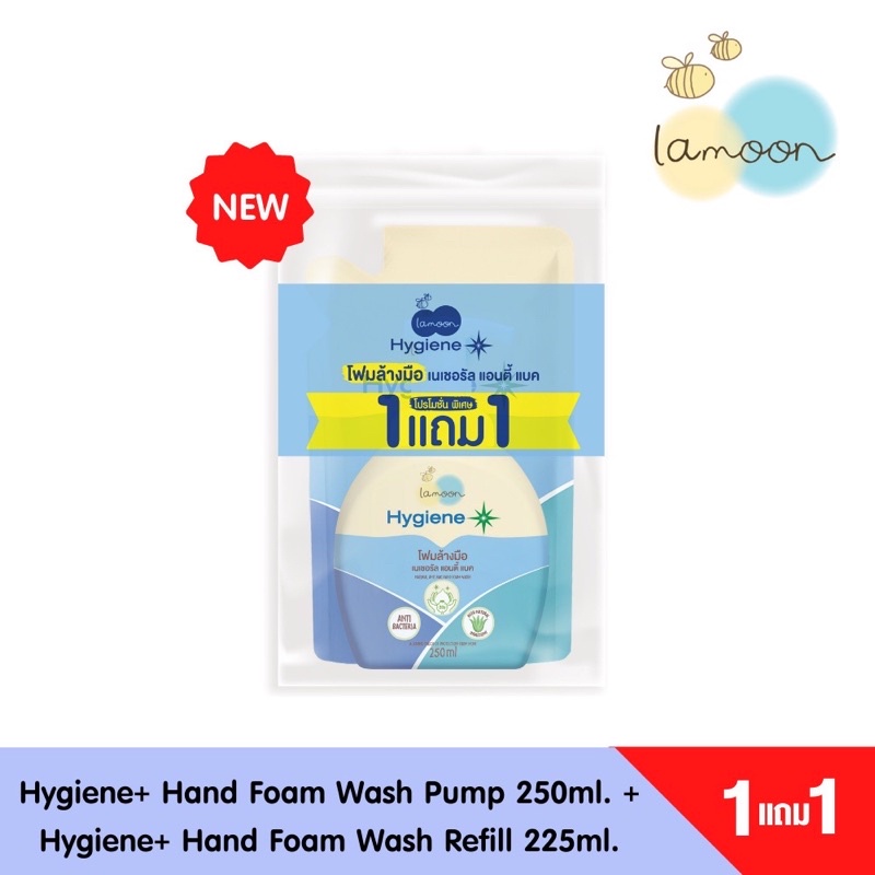 Lamoon baby ละมุนเบบี้ ไฮจีนพลัส เซทโฟมล้างมือ (ขวดปั้ม) 250 มล. แถมฟรี !! ขนาดรีฟิล 225 มล. 1 ถุง
