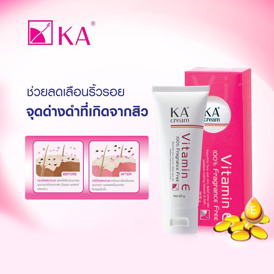 KA CREAM เคเอ ครีม ครีมวิตามินอี เข้มข้น หน้าเนียน นุ่ม ชุ่มชื่น 30 / 60 G.