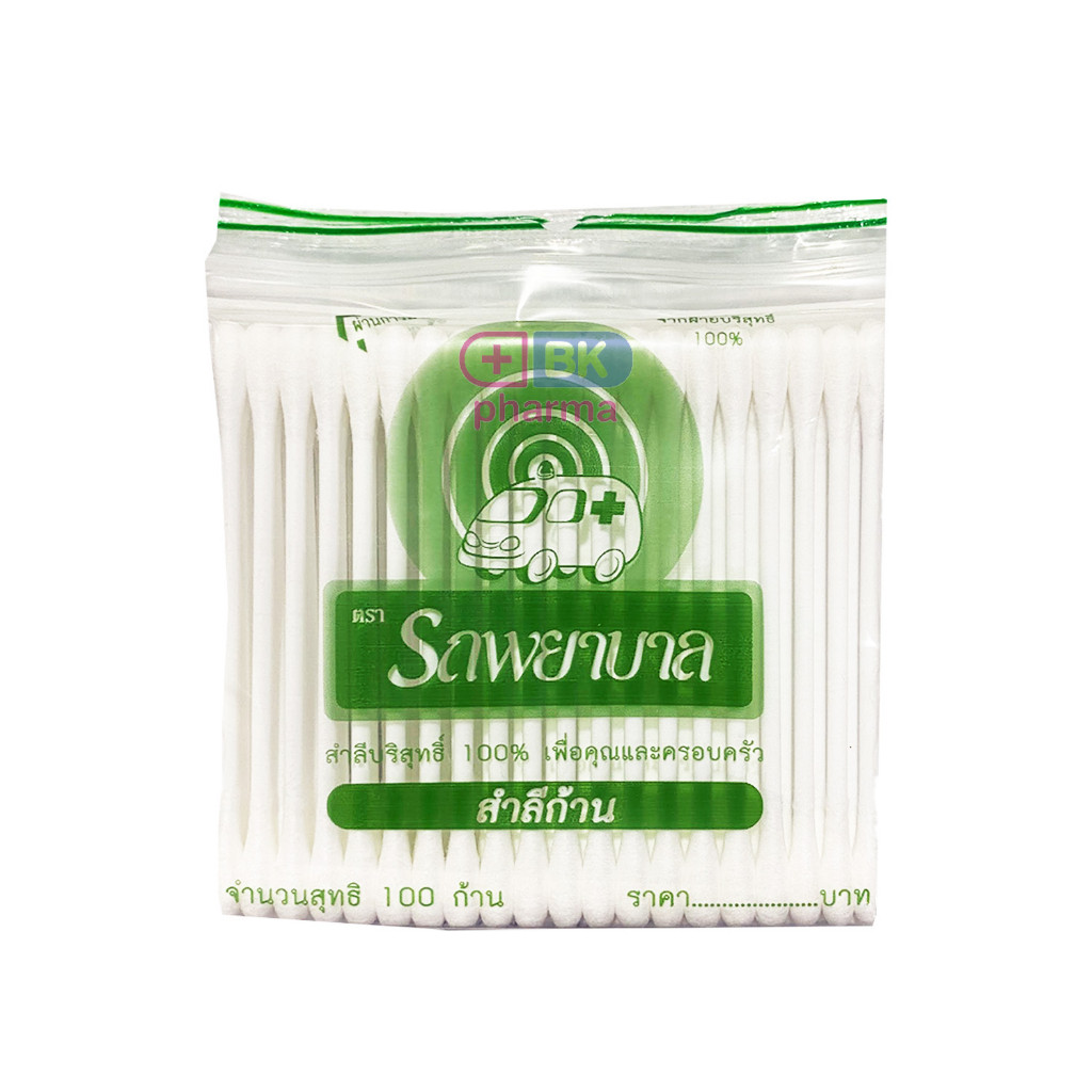 สำลีก้าน คอตตอนบัด cotton buds ขนาดมาตรฐาน - ขนาดเล็ก สำหรับเด็ก ตรารถพยาบาล 100 ก้าน 1 ห่อ