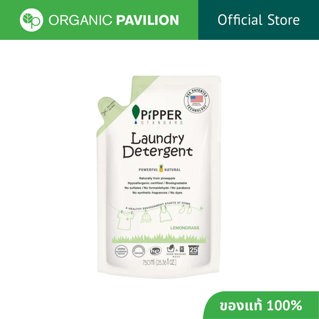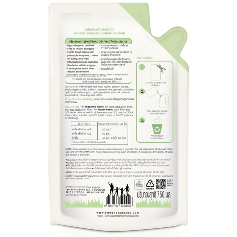 Pipper Standard น้ำยาซักผ้าสูตรอ่อนโยน แบบถุงเติม กลิ่นตะไคร้ Refill Laundry Detergent Lemongrass Scent (750ml)