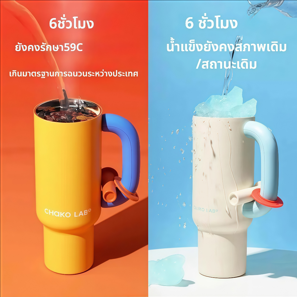 Chakolab ถ้วยฟางสแตนเลสหุ้มฉนวนความจุขนาดใหญ่ถ้วยน้ำน้ำแข็งถ้วยรถยนต์รับประกันแท้ 100%