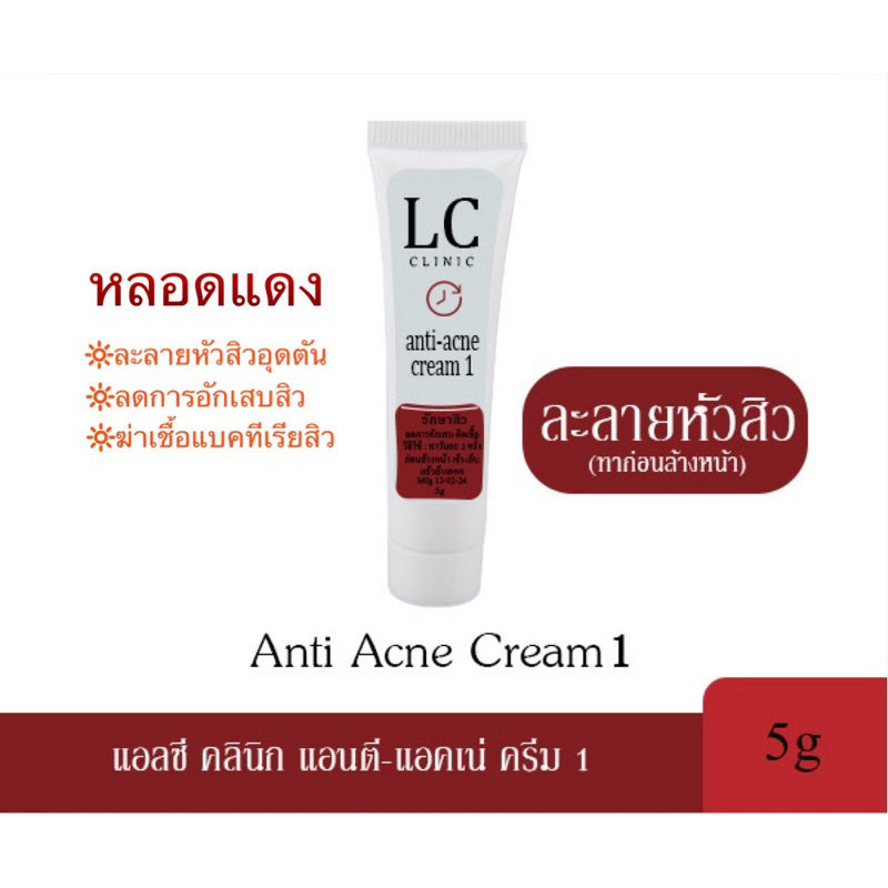 Anti Acne Cream1 แอลซี แอนติ-แอคเน่ ครีม1 (ละลายหัวสิว หลอดแดง)