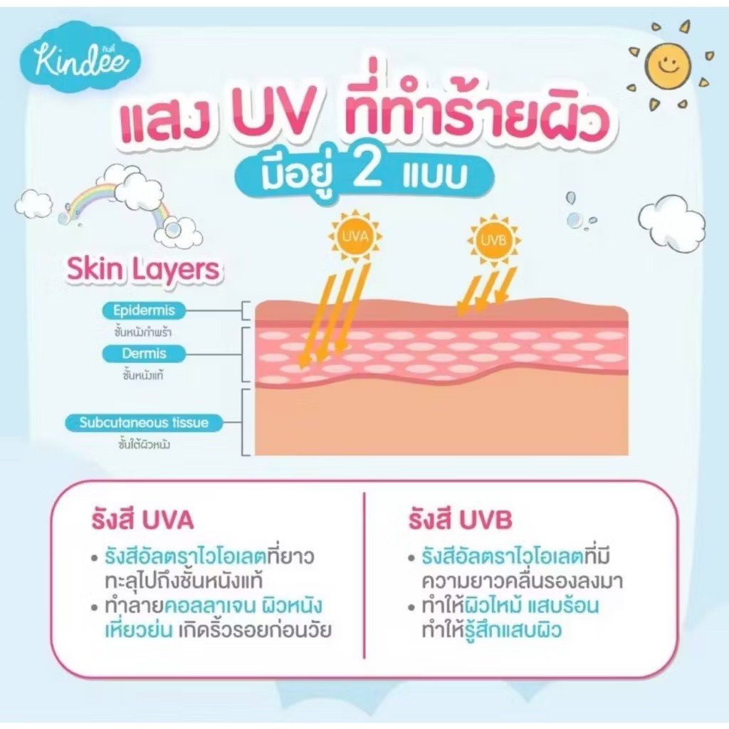 Kindee ครีมกันแดดสำหรับเด็ก 6 เดือนขึ้นไป สูตรธรรมชาติ สำหรับผิวบอบบาง อ่อนโยน SPF40/SPF50 ปราศจากน้ำหอมและพาราเบน