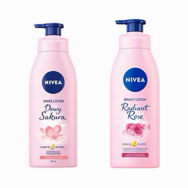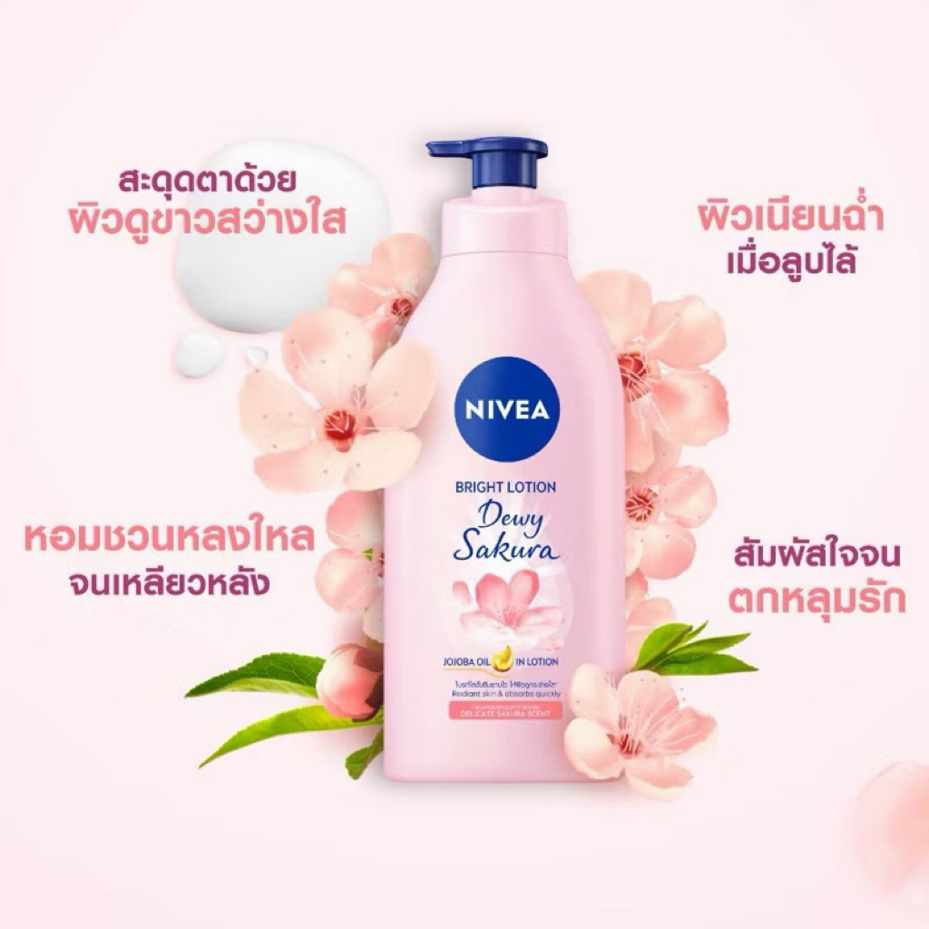 นีเวีย NIVEA BRIGHT LOTION ขวดชมพู โลชั่นบำรุงผิวกาย เรเดียนท์ โรส &ดิวอี้ ซากุระ ราคาต่อขวด