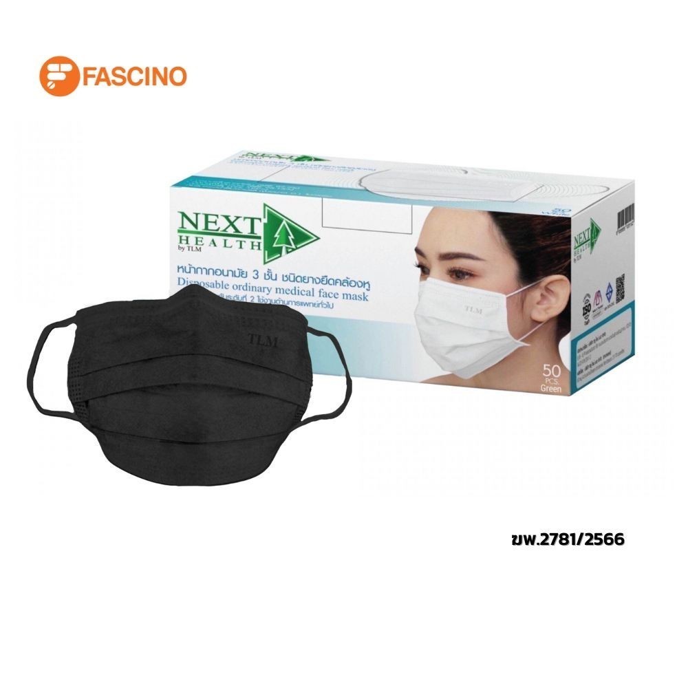 NEXT HEALTH หน้ากากอนามัย 3 ชั้น สีดำ (กล่อง 50 ชิ้น)
