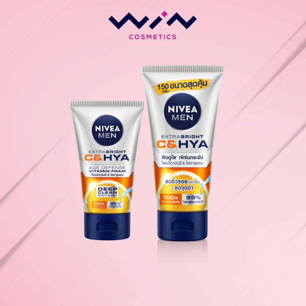 Nivea นีเวีย เมน เอ็กซ์ตร้า ไบรท์ ซี&ไฮยา เอจ ดีเฟนซ์ วิตามิน วอช โฟมล้างหน้า (100 กรัม,150 กรัม)