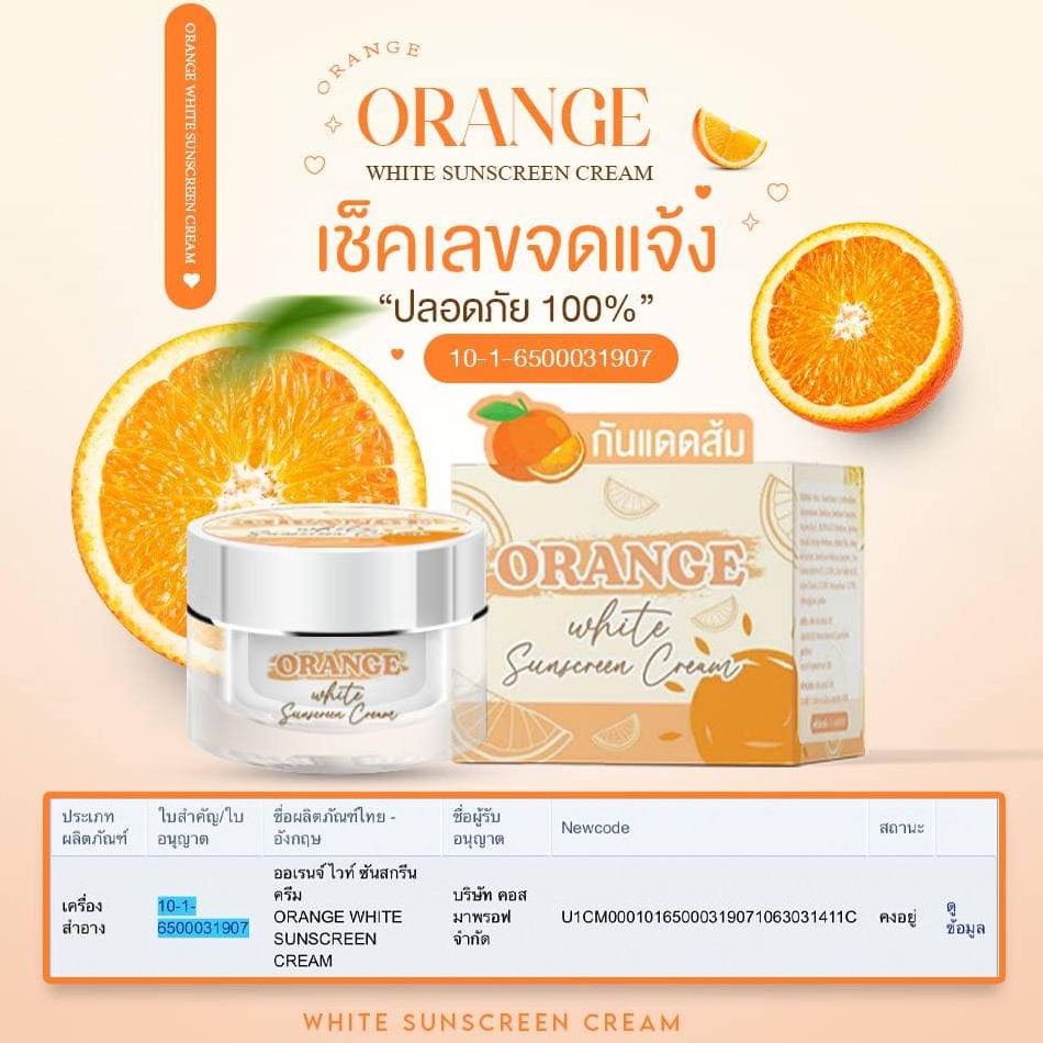 (ชองแท้+พร้อมส่ง) กันแดดส้ม🍊 ออเร้นจ์ ไวท์ ซันสกรีน ครีม Orange White Sunscreen Cream SPF 50 PA+++