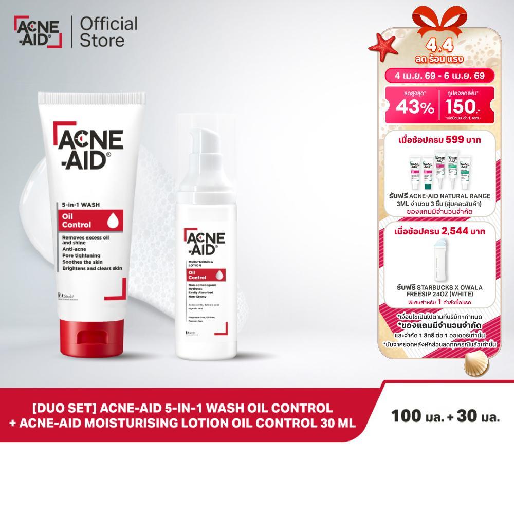 [Duo Set] ACNE-AID 5-IN-1 WASH OIL CONTROL + ACNE-AID MOISTURISING LOTION OIL CONTROL 30 ml