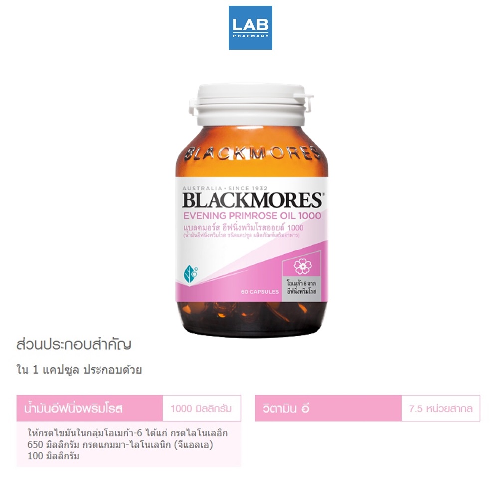 Blackmores Evening Primrose Oil 1000 mg. 60 capsules - แบลคมอร์ น้ำมัน อีฟนิ่ง พริมโรส 60 แคปซูล