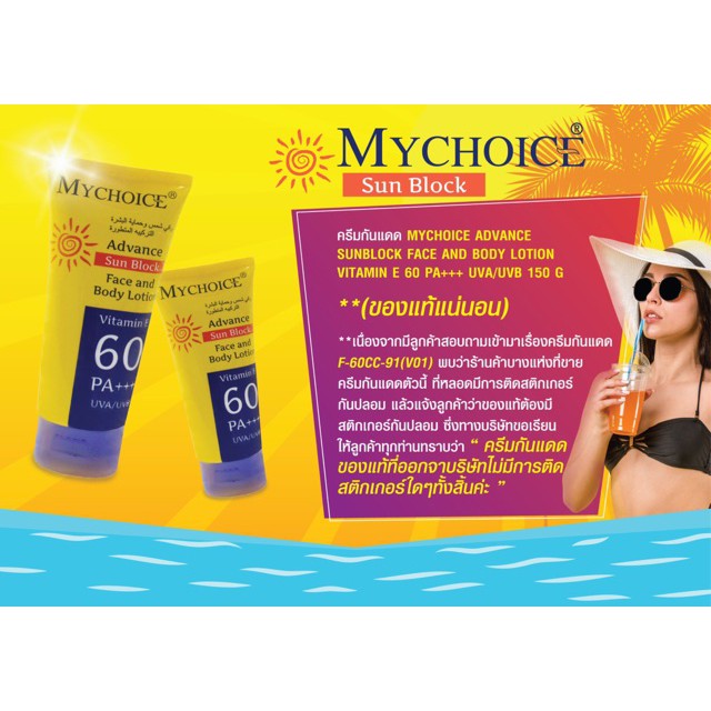 กันแดด My Choice SPF60 PA+++ ผลิตภัณฑ์ที่ช่วยปกป้องผิว F-60CC-170 (หลอดเหลือง)