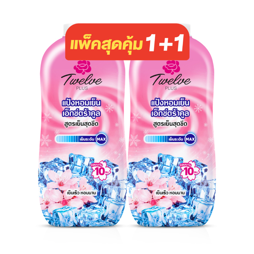 ทเวลฟ์ พลัส เอ็กซ์ตร้าคูลลิ่ง แป้งเย็น 270 กรัม สีชมพู (แพ็คคู่) 12 PLUS EXTRA COOLING 270G. X 2 PINK (PACKTWIN)