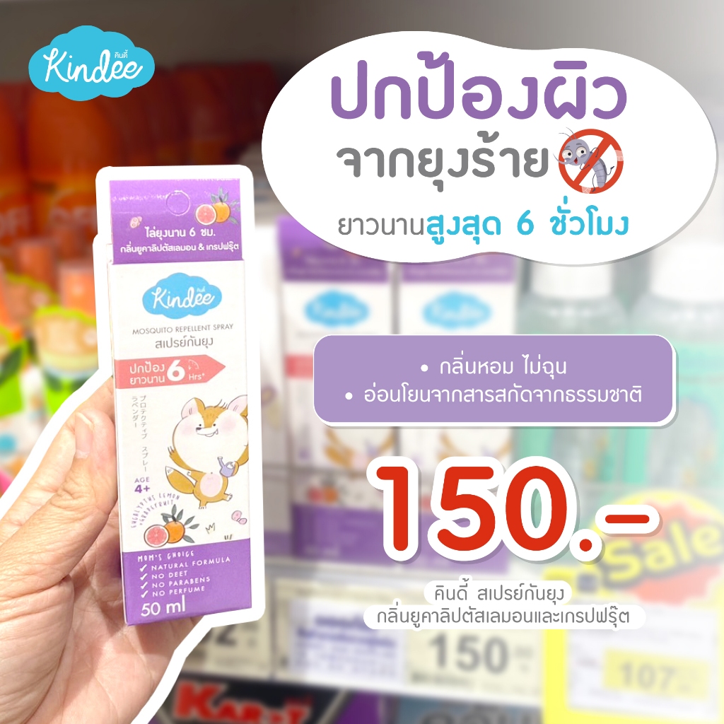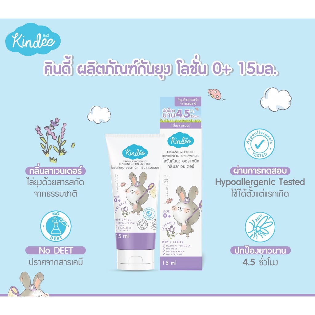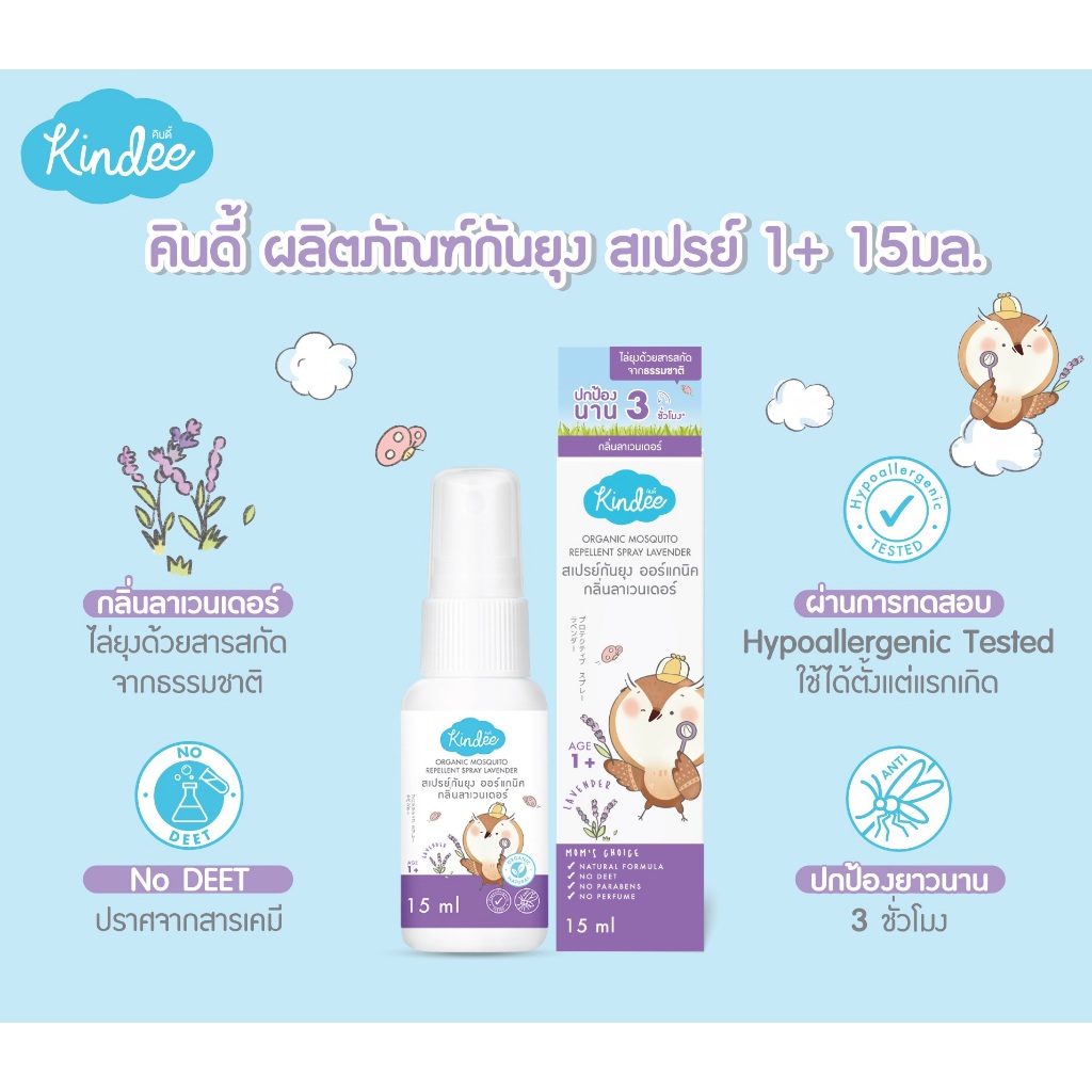 Kindee คินดี้ สเปรย์/โลชั่นกันยุง กลิ่นลาเวนเดอร์ สำหรับเด็กแรกเกิดขึ้น