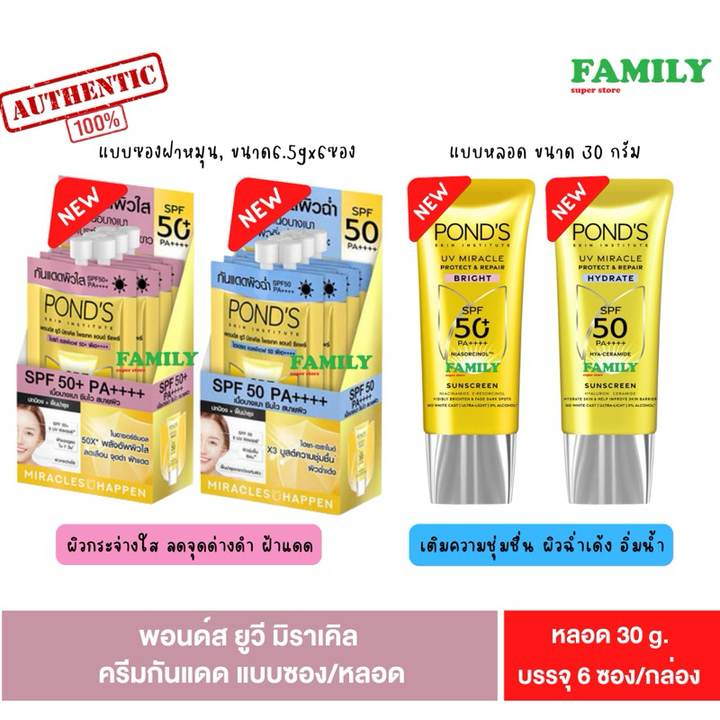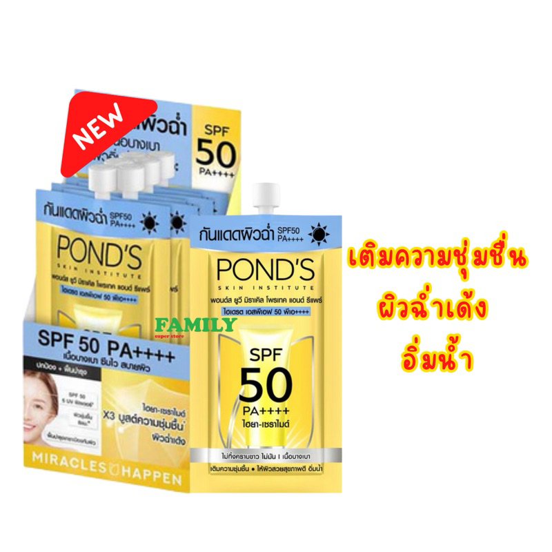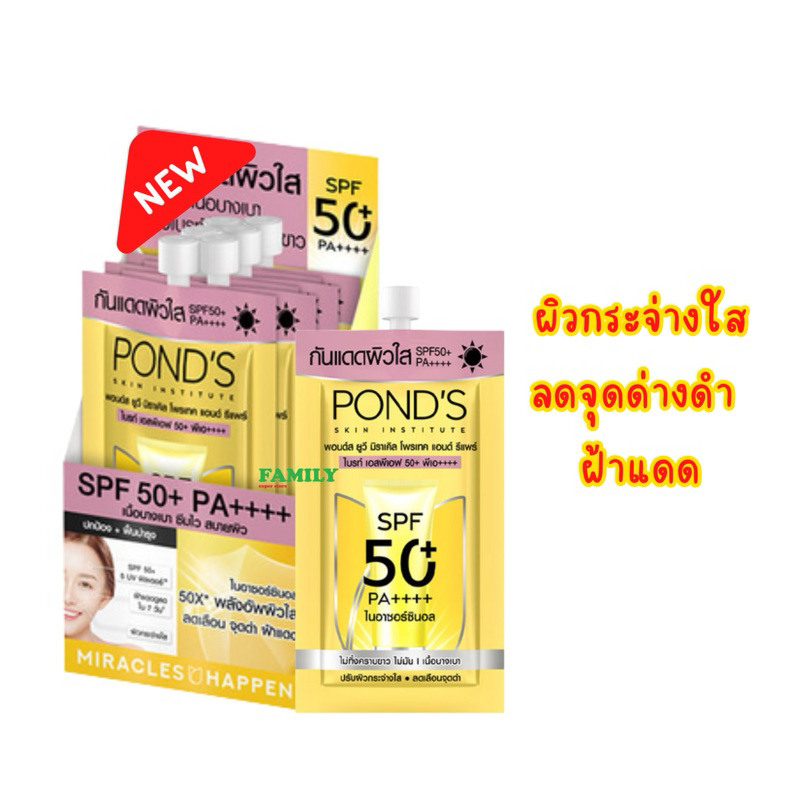 พอนด์ส กันแดด เนื้อพุดดิ้ง SPF 50+ PA++++ สูตรกระจ่างใส/สูตรชุ่มชื่น 6.5gx 6ซอง / 30ml.
