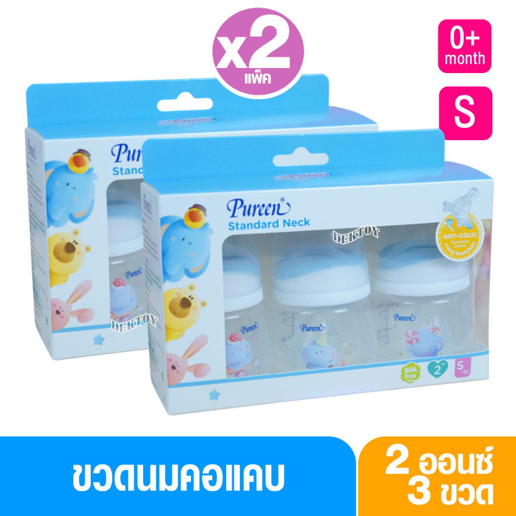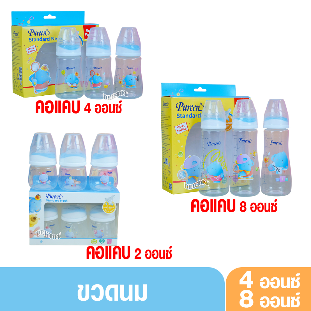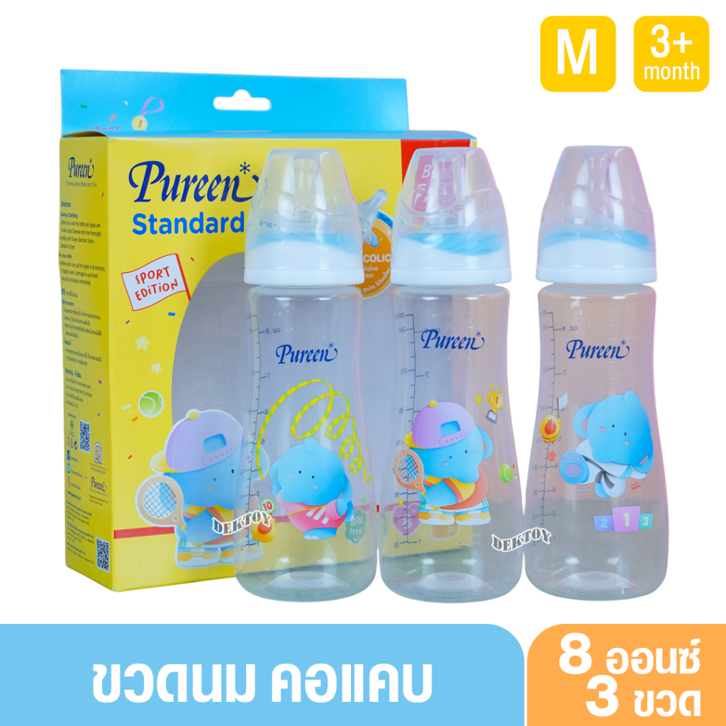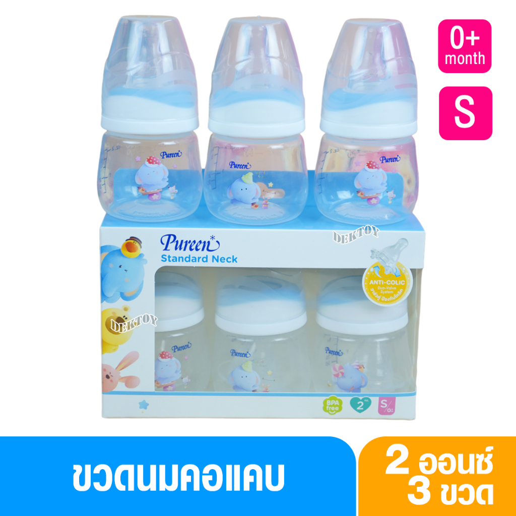 Pureen เพียวรีน ขวดนมเพียวรีนเด็กแรกเกิด PP 2/4/8 ออนซ์คอแคบ แพ็ค3ขวด ลายช้าง