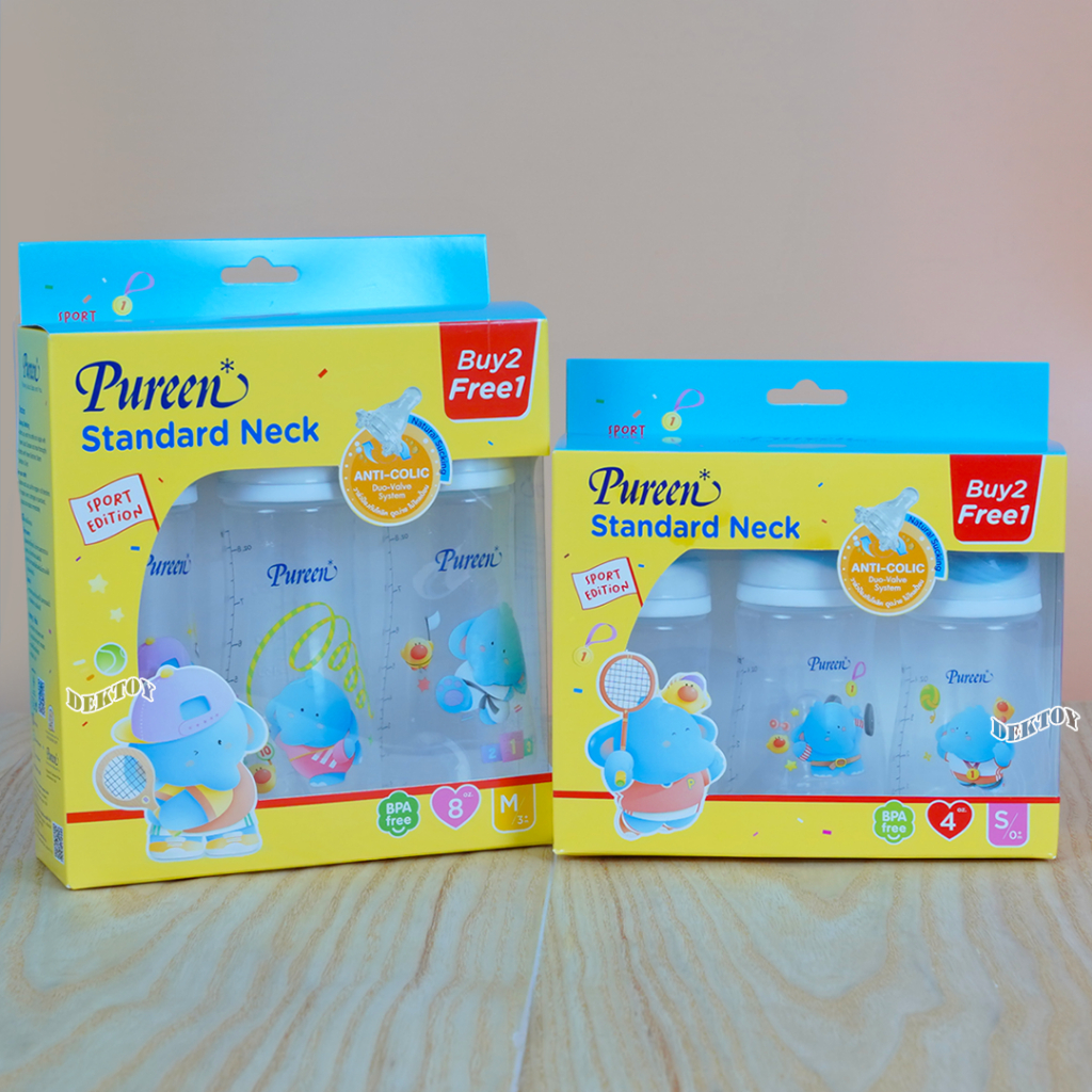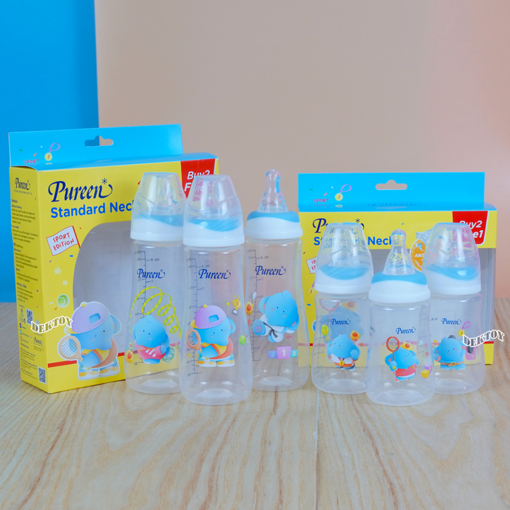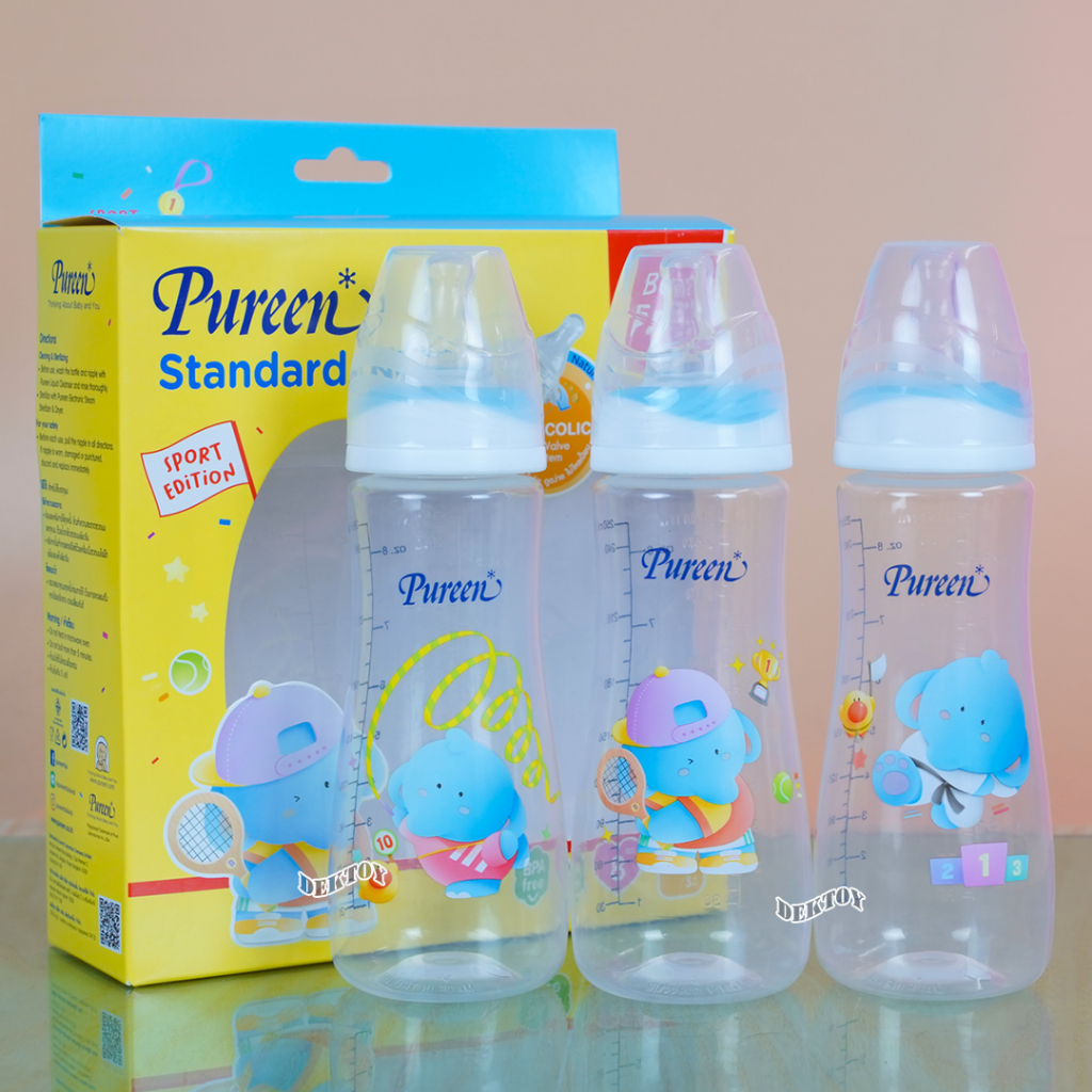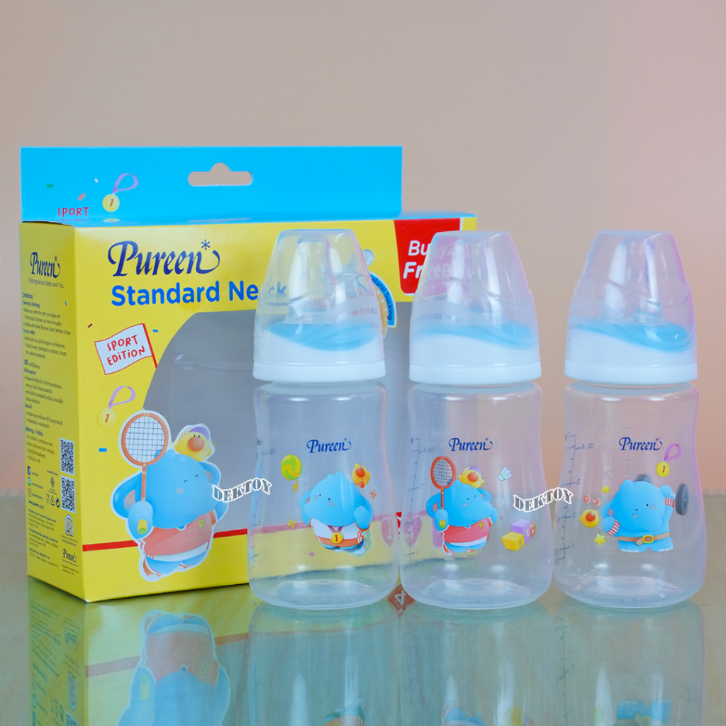 Pureen เพียวรีน ขวดนมเพียวรีนเด็กแรกเกิด PP 2/4/8 ออนซ์คอแคบ แพ็ค3ขวด ลายช้าง