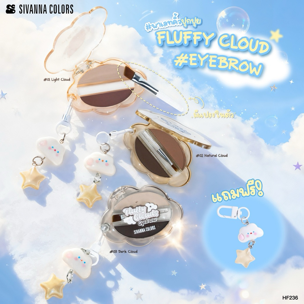 (🔥ของแท้/ส่งไว🔥) Sivanna Color Fluffy Cloud Eyebrow พาเลทคิ้ว พร้อมที่ห้อยน้องปุกปุย HF236