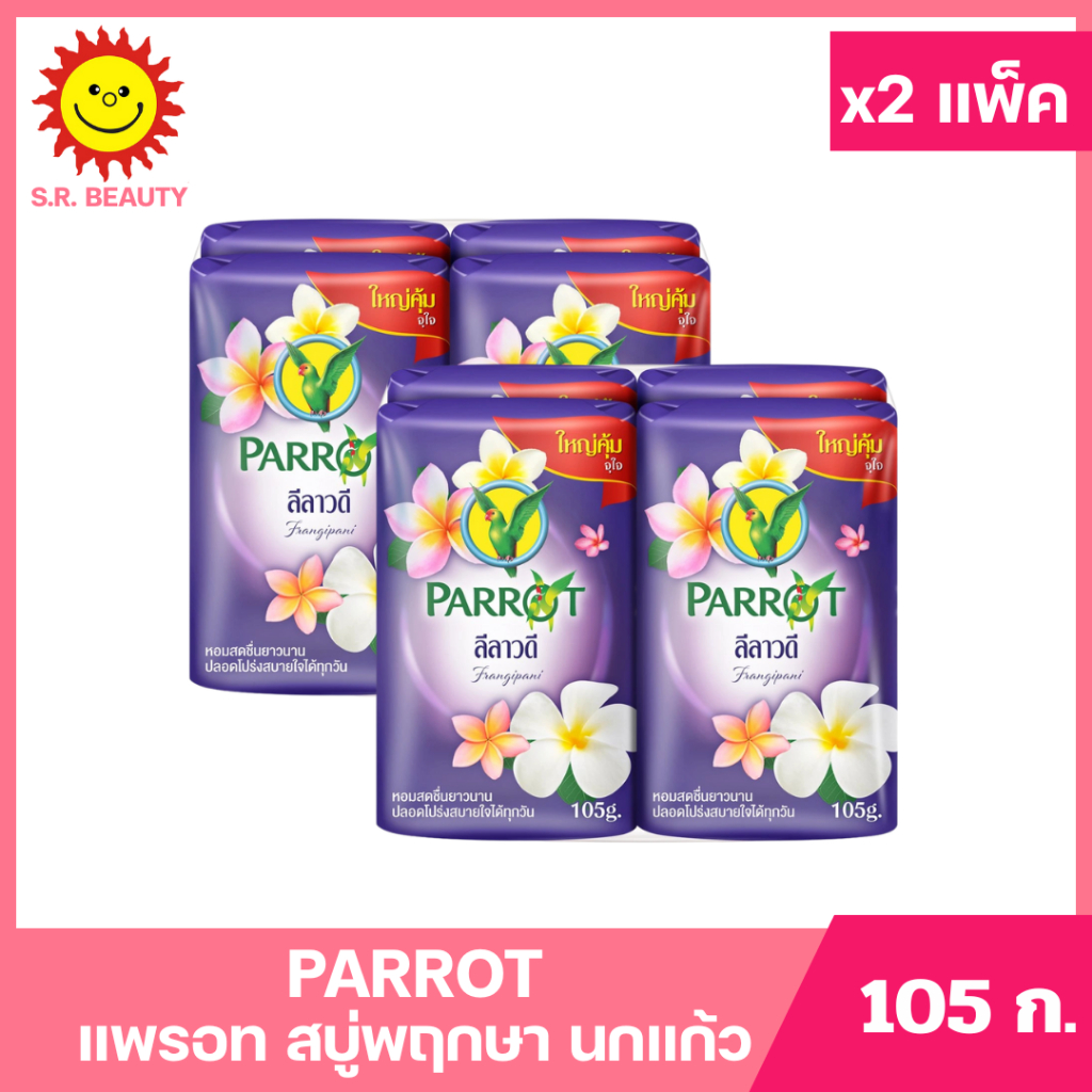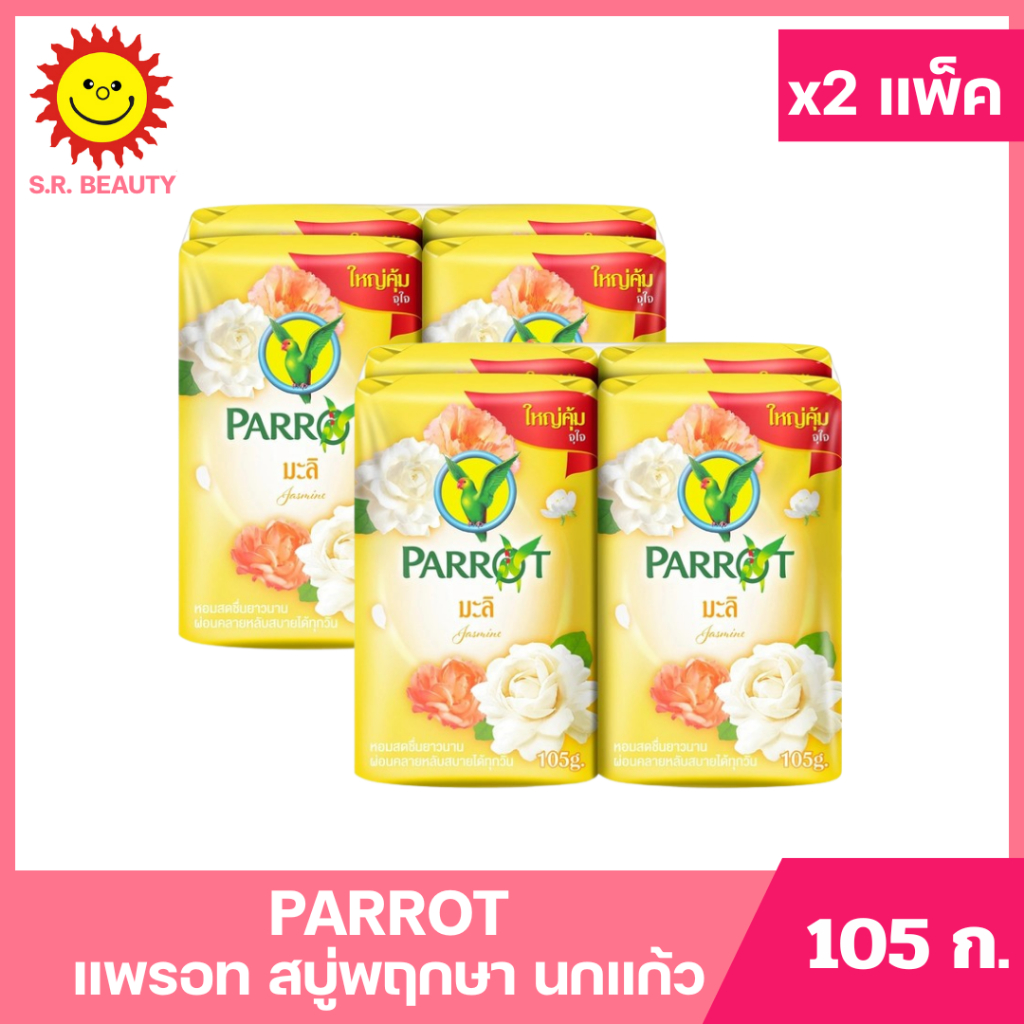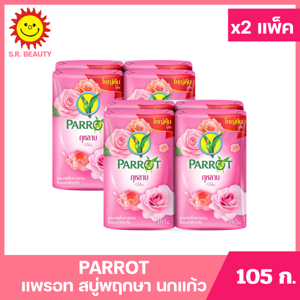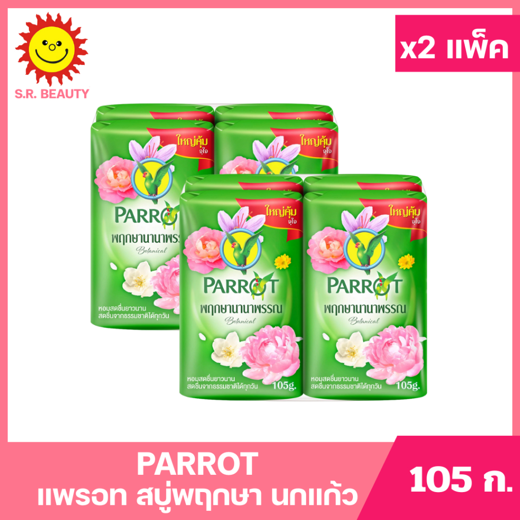 [ 2แพ็ค ] Parrot แพรอท สบู่พฤกษา นกแก้ว ขนาด 105 กรัม แพ็ค 4 ก้อน (x2แพ็ค) มี 10 กลิ่น